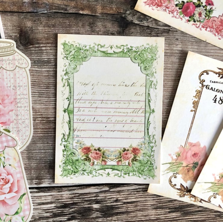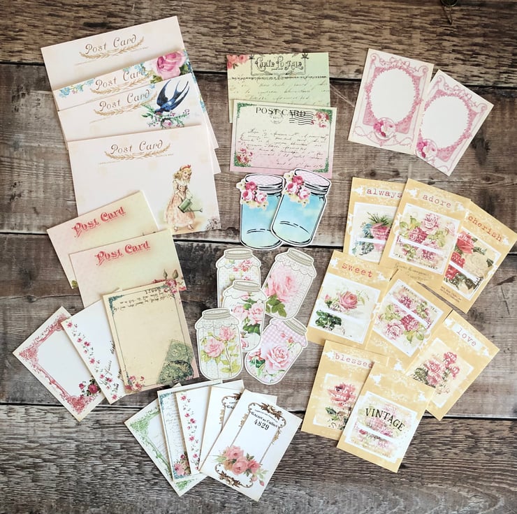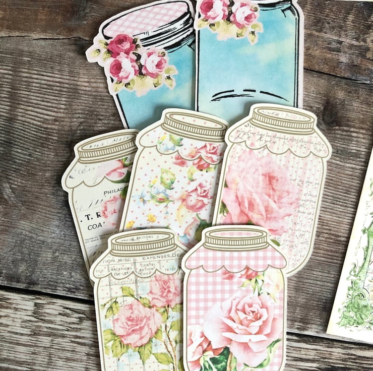 Beautiful set of 26 x Shabby chic journal cards pack .. also 7 x mason jar ephemera pieces you can make into mini tags if you wish.
