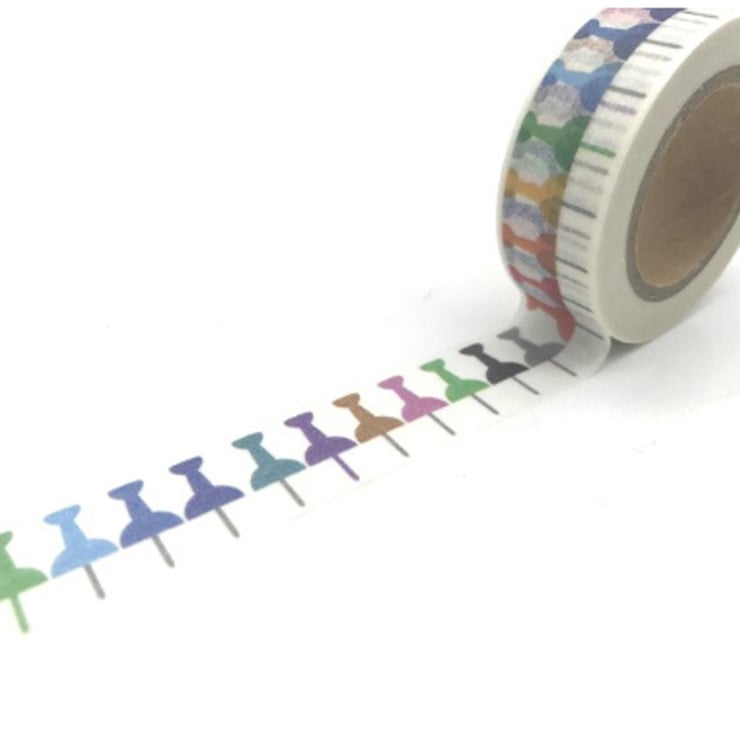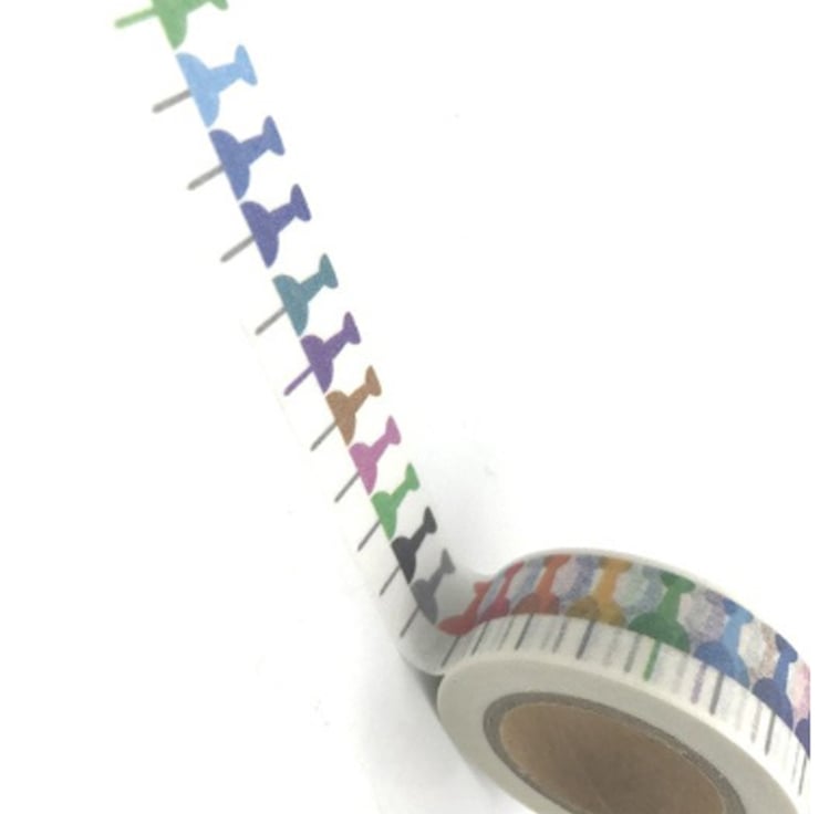 multicoloured tape. Push pins in a rainbow of colours.
