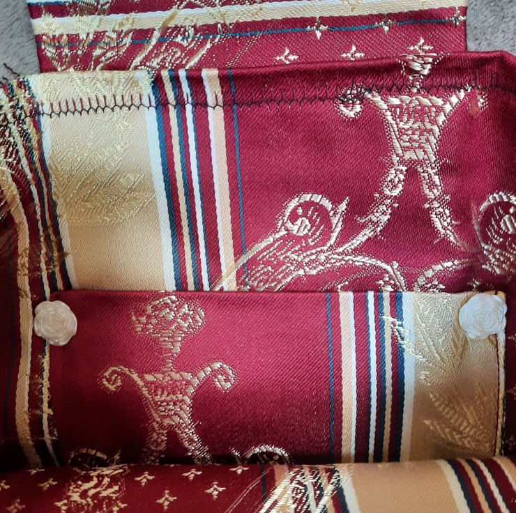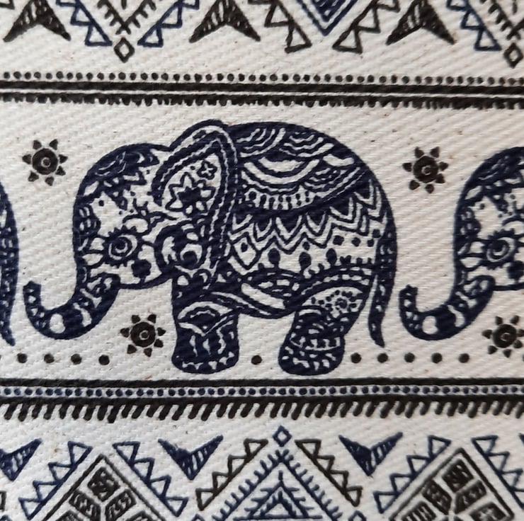 This beautiful elephant fabric came back from Thailand from one of my son's travels, so I teamed it with this gorgeous rich brown wool fabric and lined it with sumptuous deep red and gold fabric to make this original design. A very special gift for a very special someone.