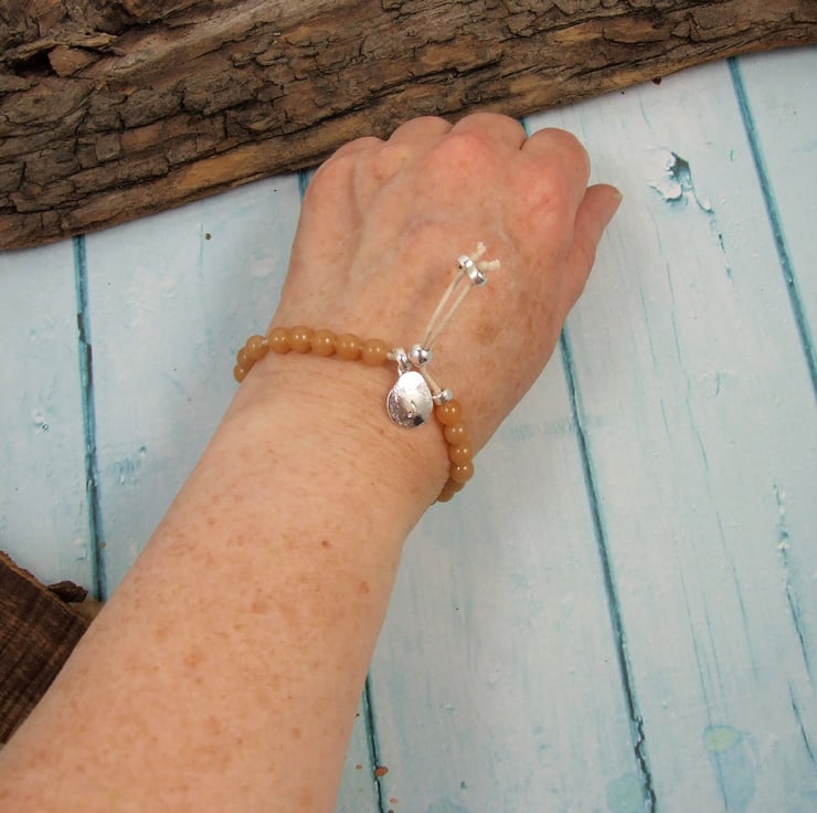 All fittings are sterling silver, the clasp is a silicone filled slider making this a fully adjustable fit for small to medium wrist 15-17cms (6-7 inches)