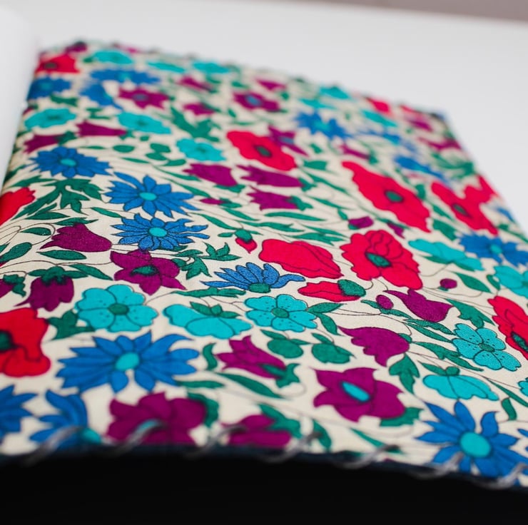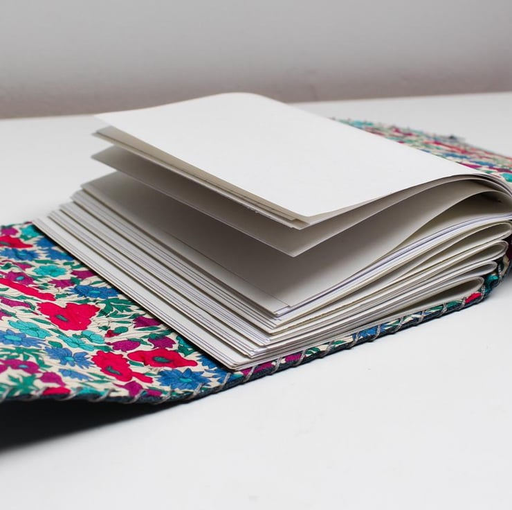 All lined with a gorgeous floral (or non floral) fabric and filled with plain paper, lined paper, recycled paper or watercolour paper.