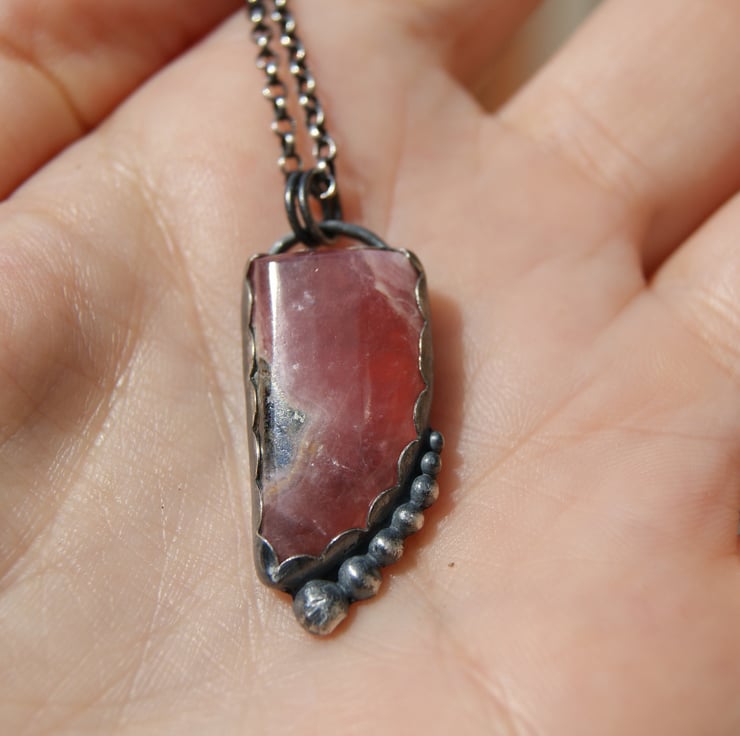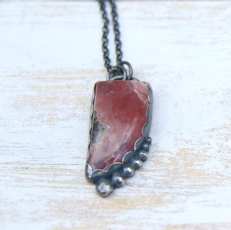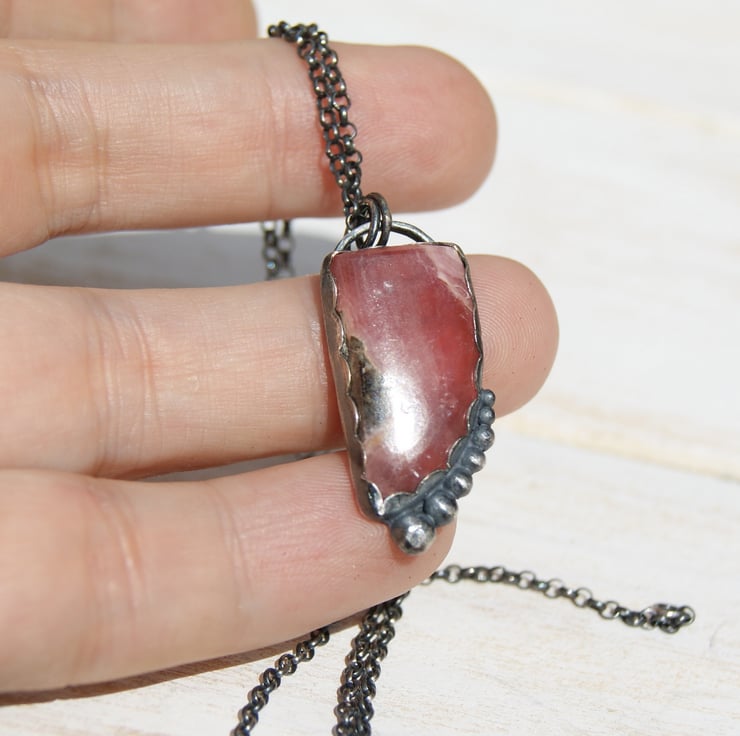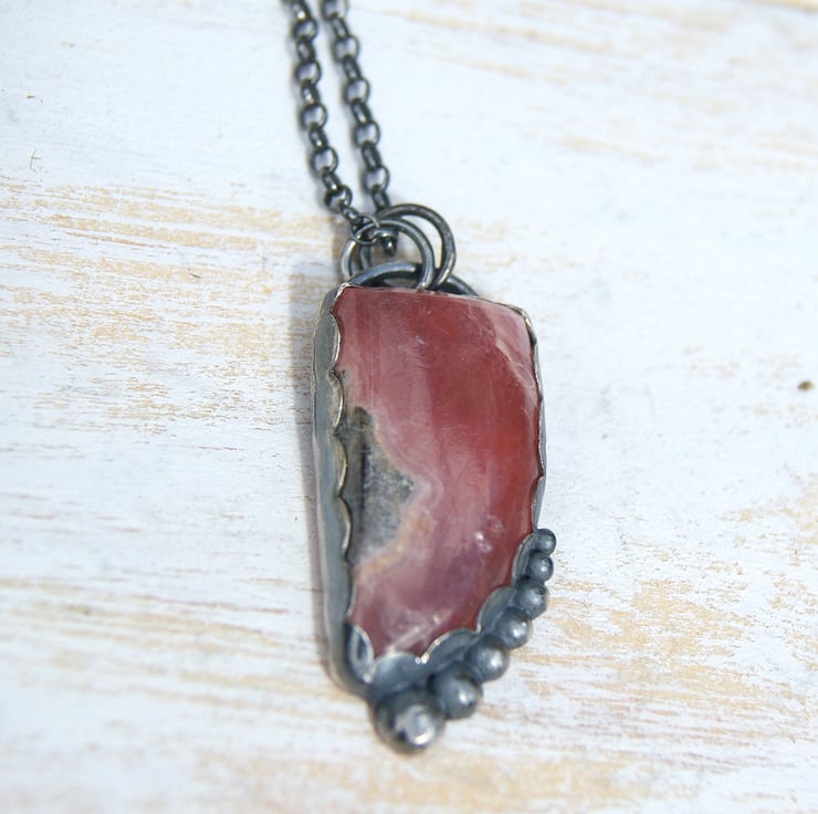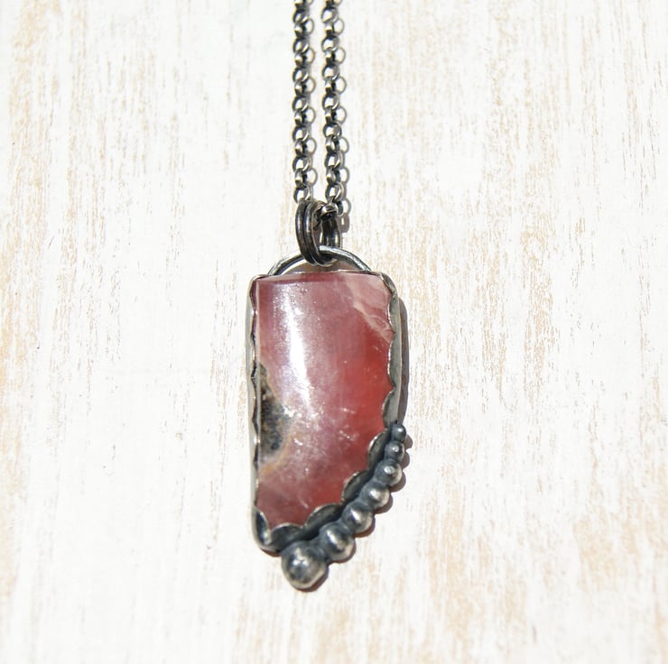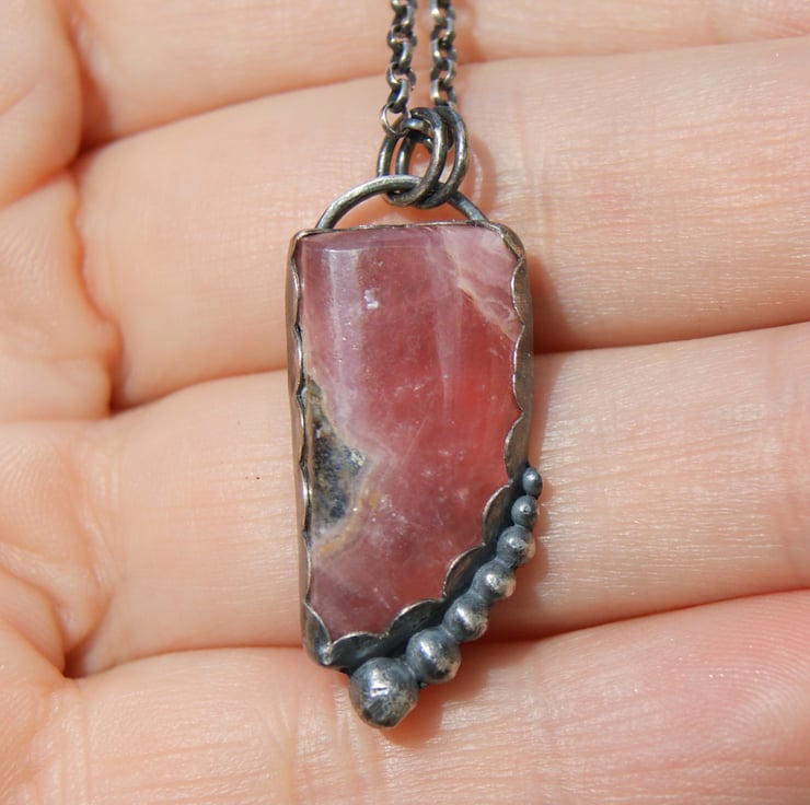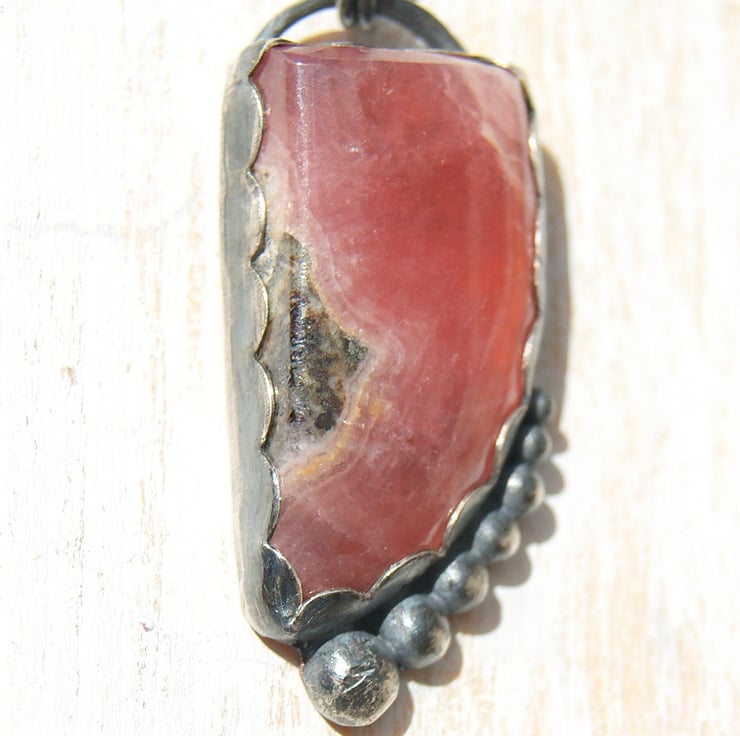 This Rhodochrosite pendant has been designed and handmade by hand using traditional silversmithing techniques in my studio in Crawley, West Sussex.