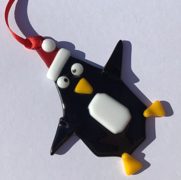 Hand crafted fused glass penguin decorations for your Christmas tree , also ideal as a table gift or stocking filler . Can be brought as a single penguin and also available as a pair (see other list