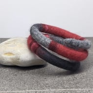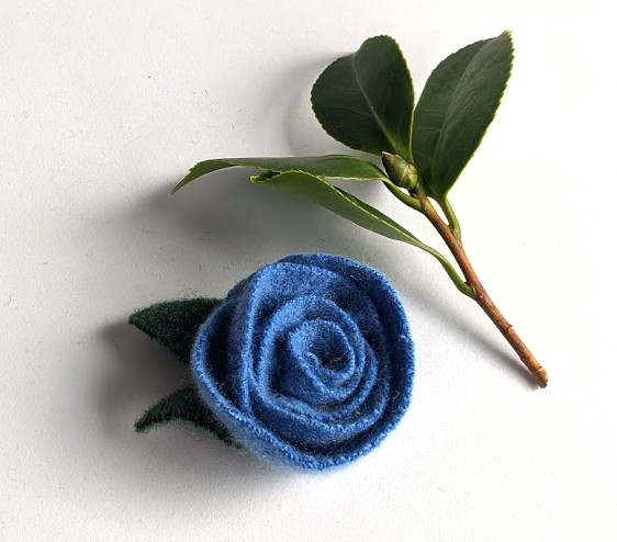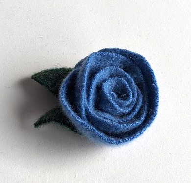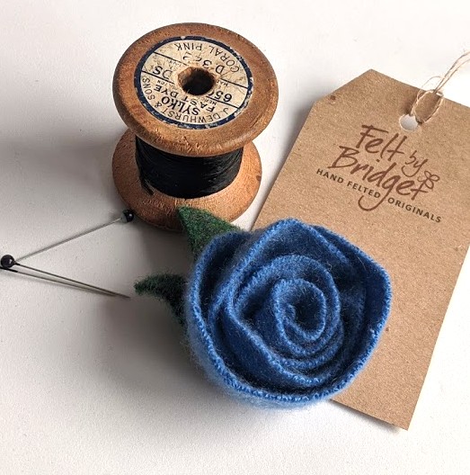 These were a little divergence for me. I scoured charity shops, found wool jumpers, then deliberately shrank them, cut them up and made lovely little rose brooches, secured with a sewn on brooch pin. (I can't be doing with glue)