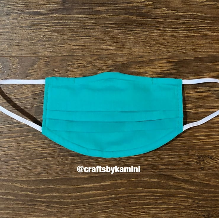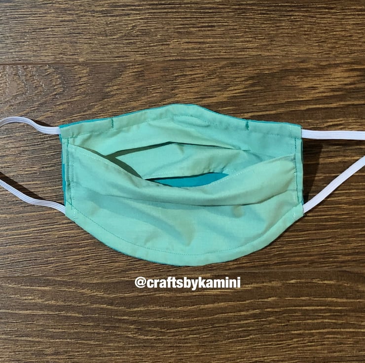 This face covering is made from green cotton with a different shade of green back.