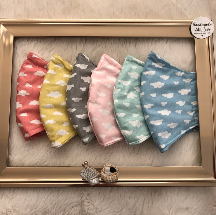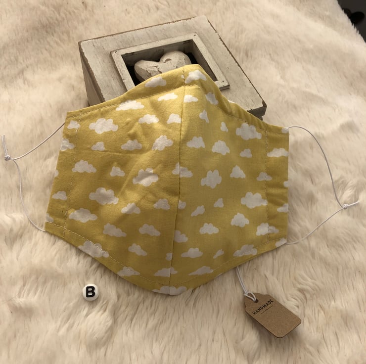 a snug fit,and to help prevent glasses from misting.They are washable,breathable and reusable.They have thin adjustable elastic ear loops.Just untie and hide knot in side They come in a range of cloud fabric in 6 beautiful colours.Colour options are A:Sold Out.B:Mustard.C:SOLD OUT D:Pale Pink.E:SOLD OUT.E.:SOLD OUT.Please see my little shop for more colours and pattern designs.