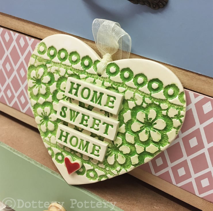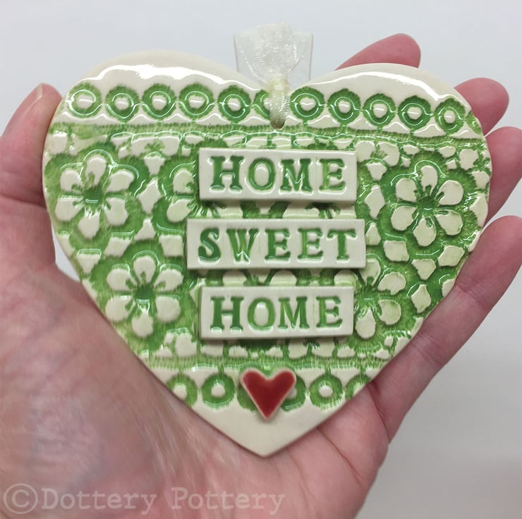 Ceramic heart hanging decoration Pottery Heart  Home Sweet Home Flower pattern