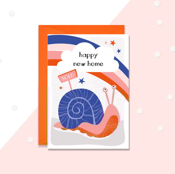 It's time for a new abode - at least Mr Snail thinks so! This fun new home card features my illustration of a cute snail with a 'sold' sign on his shell.