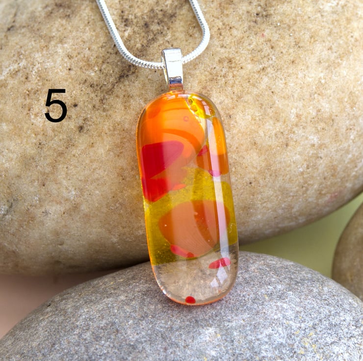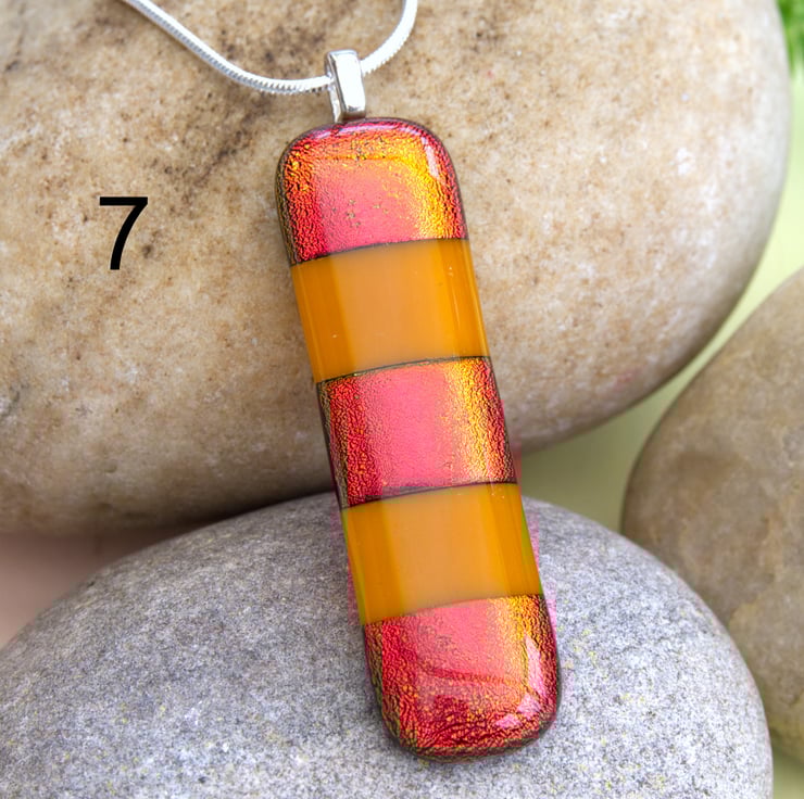 7. 1.5cm by 5cm - a long pendant with red dichroic and orange glass sections