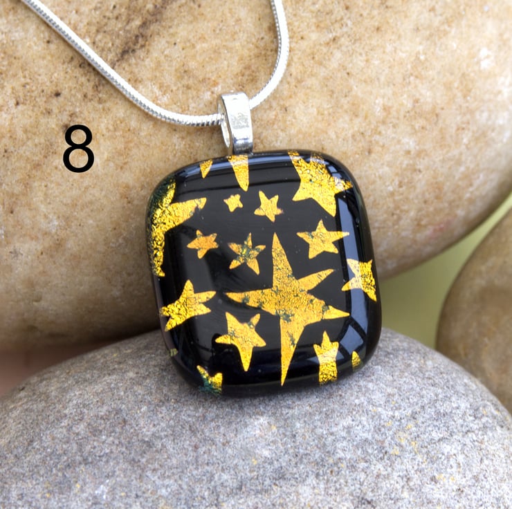 8. 2.2cm by 2.4cm - a black pendant with a yellow star dichroic pattern