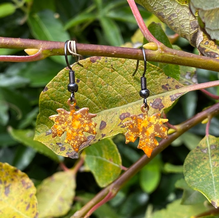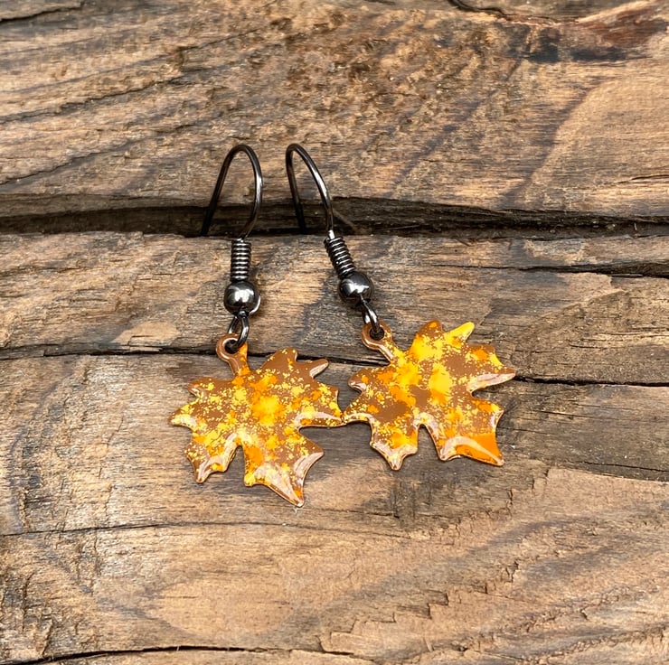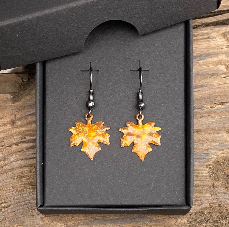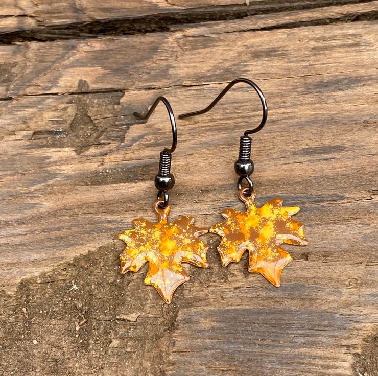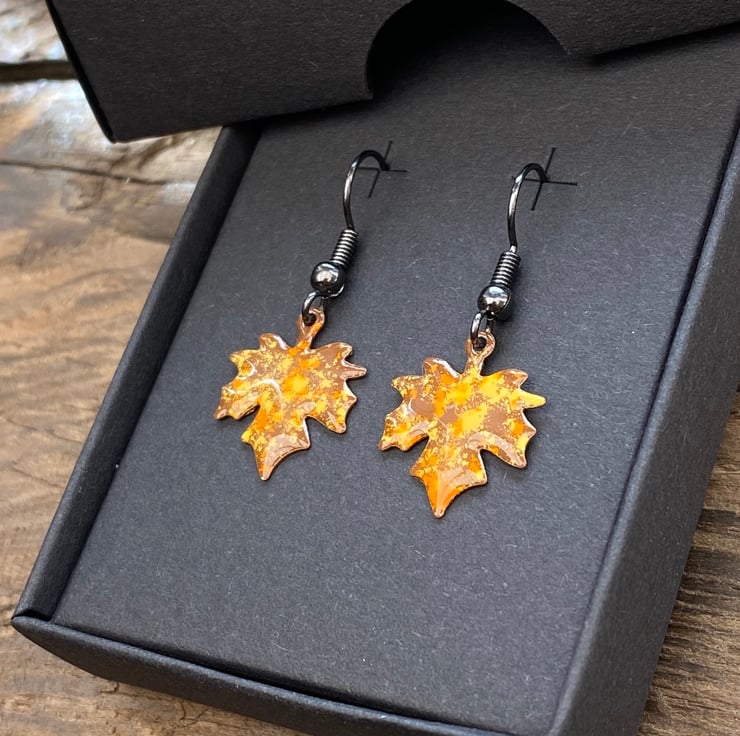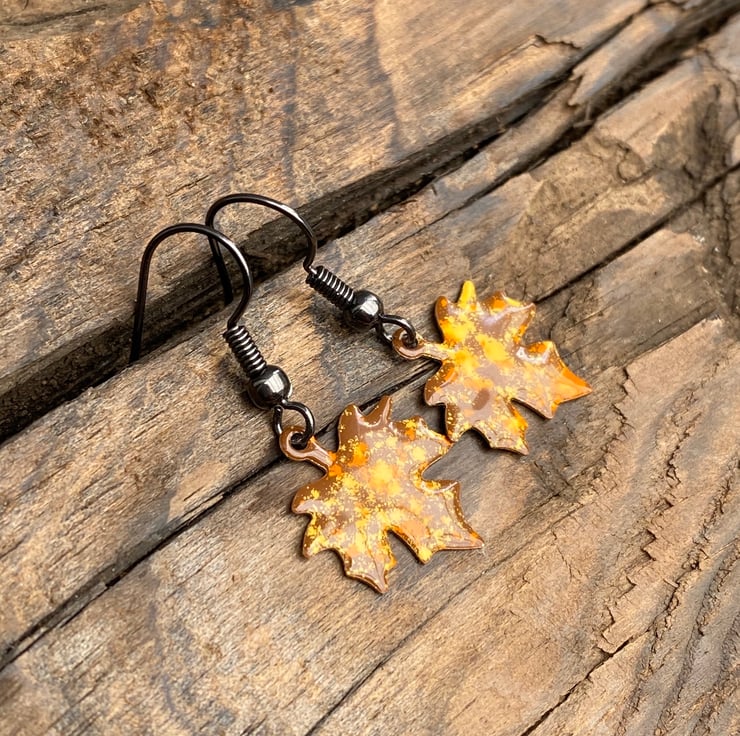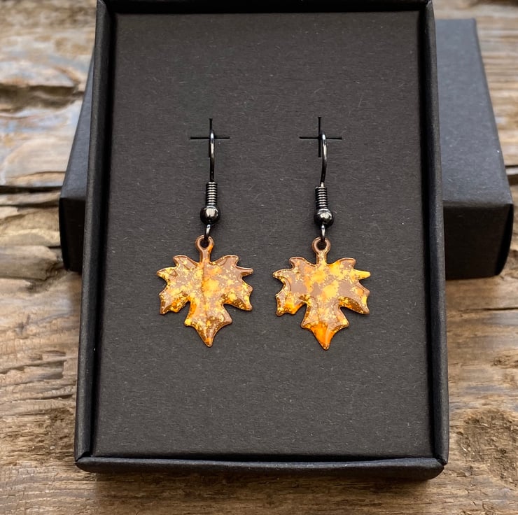 Stand out from the crowd this autumn with a unique pair of hand enamelled maple leaf earrings.