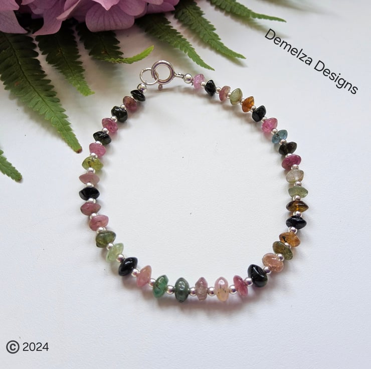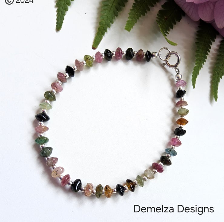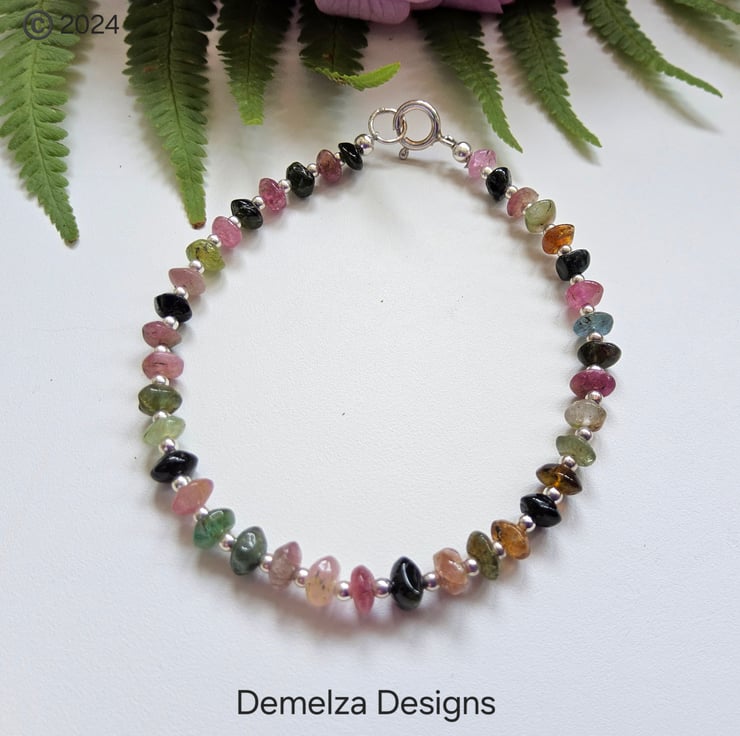 A beautiful bracelet designed and hand crafted using A grade irregular bicon cut genuine tourmaline gemstone beads. This bracelet will make a perfect quality gift or a treat to someone who knows the value of jewellery made from this gorgeous natural untreated mineral.