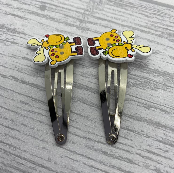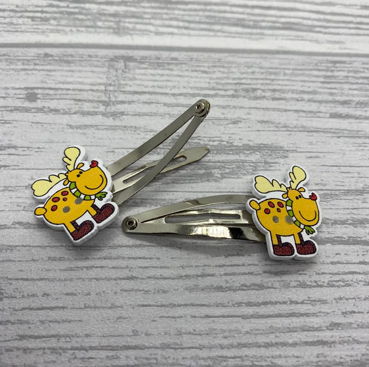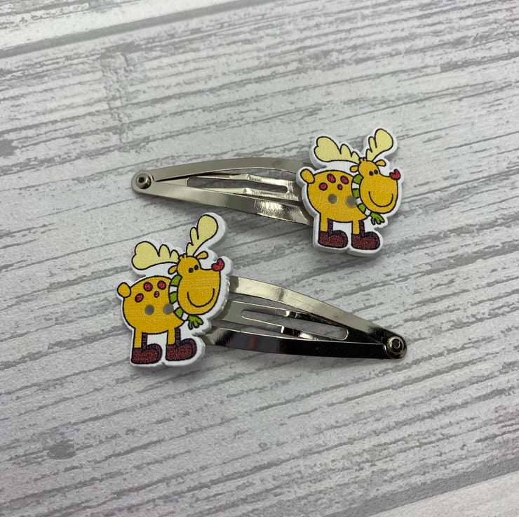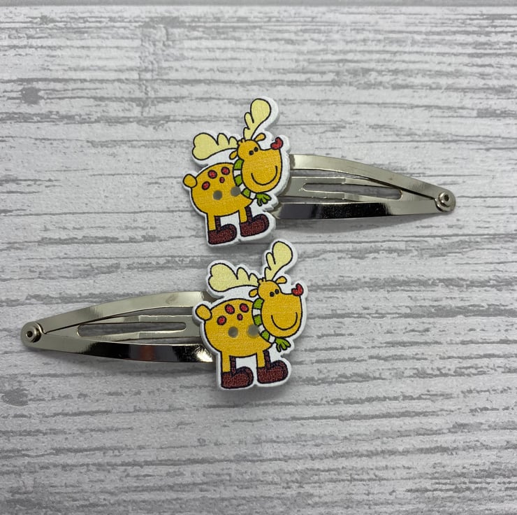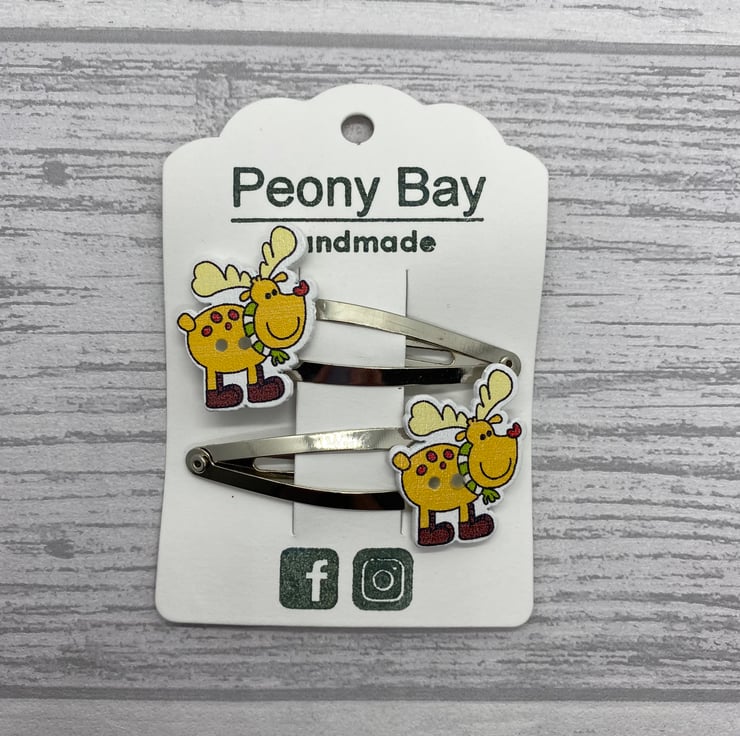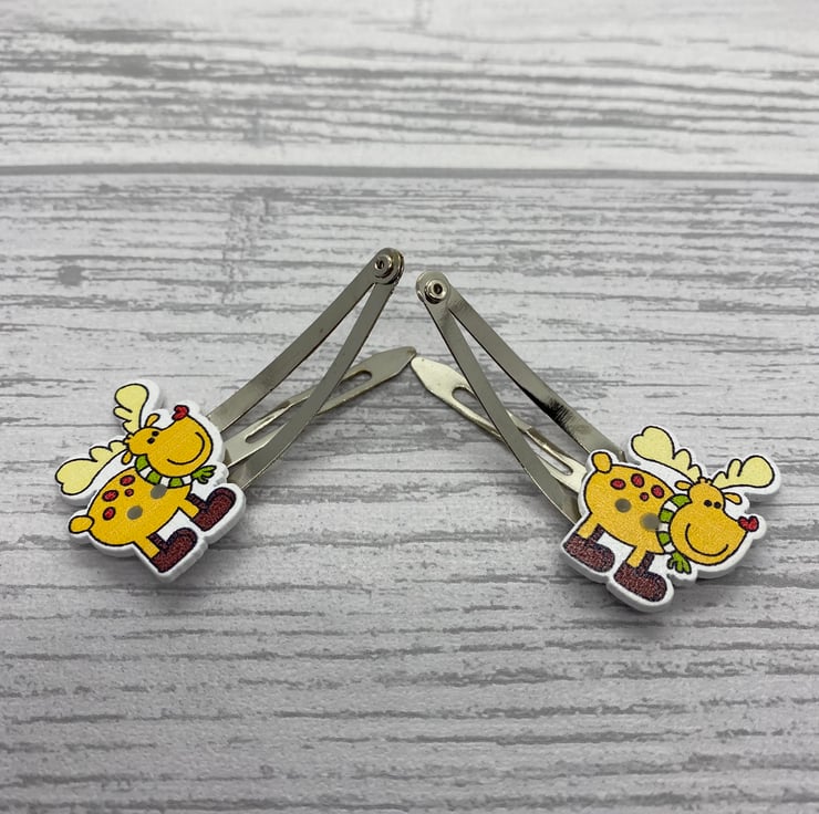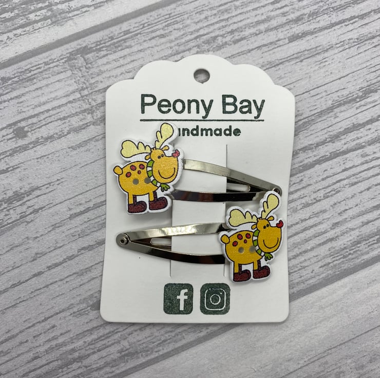 Have cute and funky hair clips this Christmas with these reindeer clips! These stylish reindeer are wrapped up with a winter scarf and some headphones! I’ve paired the reindeers with silver tone snap clips.