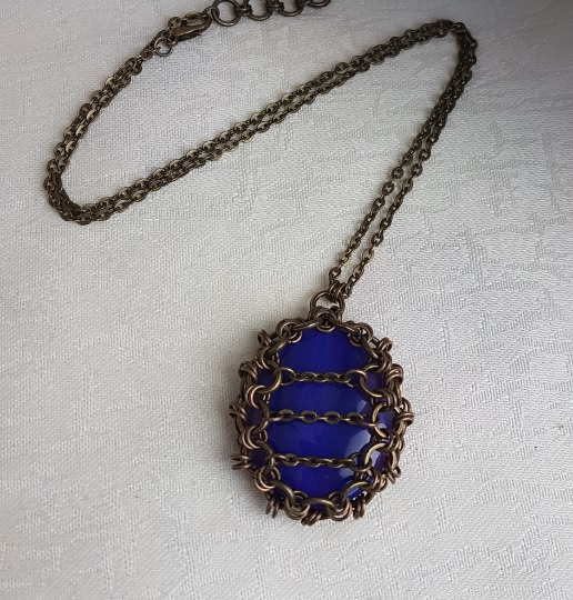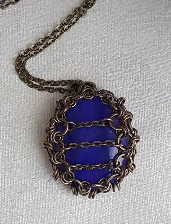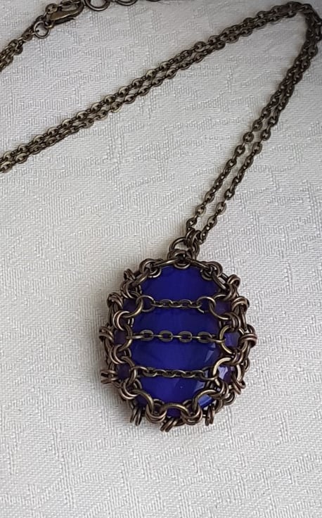 I had some Agate Cabochons in various colours and shapes so I thought i would do something a little different with them and go back to my chainmaille roots. I love the dark tones and the purple together, I think it makes a striking piece.
