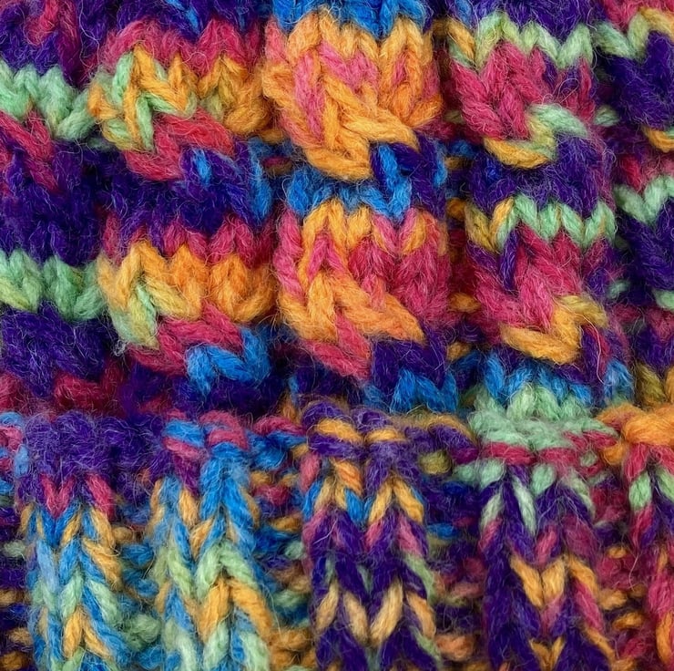One fine spring day following a rainy night, me and the team set off on our morning walk as usual. While out we saw the most vibrant rainbow I have seen in a long while and thought how cool those colours would look in a woolly hat! So on we went about our day and would you believe it, later that day I came across some fabulous chunky yarn in rainbow colours!! What are the chances!!