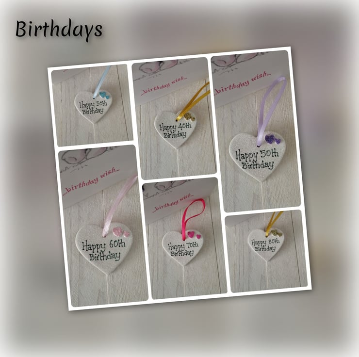 Small ceramic hearts are approx 5x5cm, just perfect for two or three short words. With an off-white base colour, handwritten message then finished with a coat of sparkly glitter and supplied in an organza gift bag.