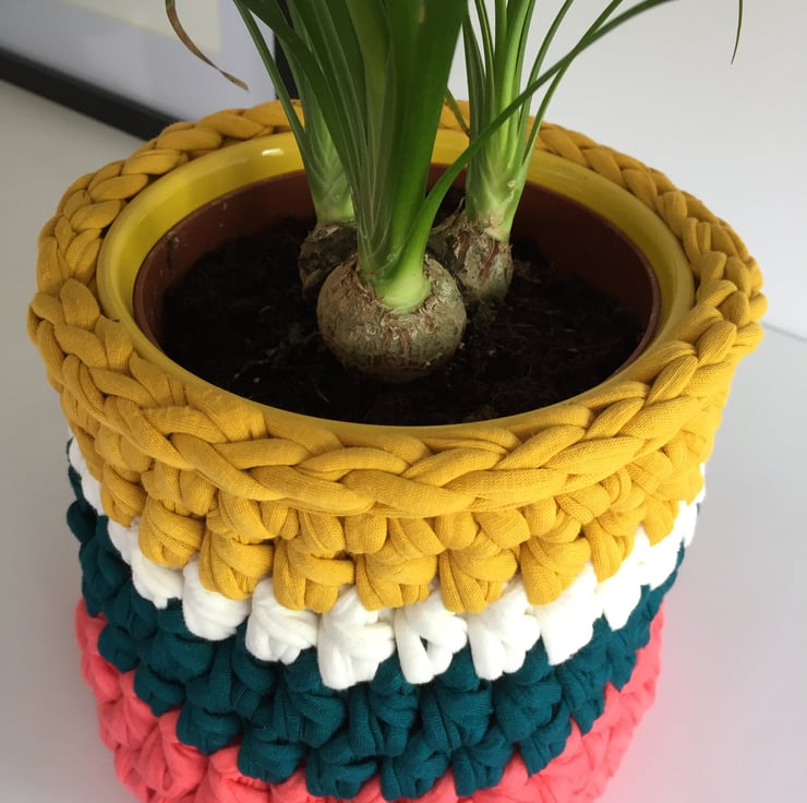 Brighten up your house plants with a handmade chunky crochet plant pot cover.