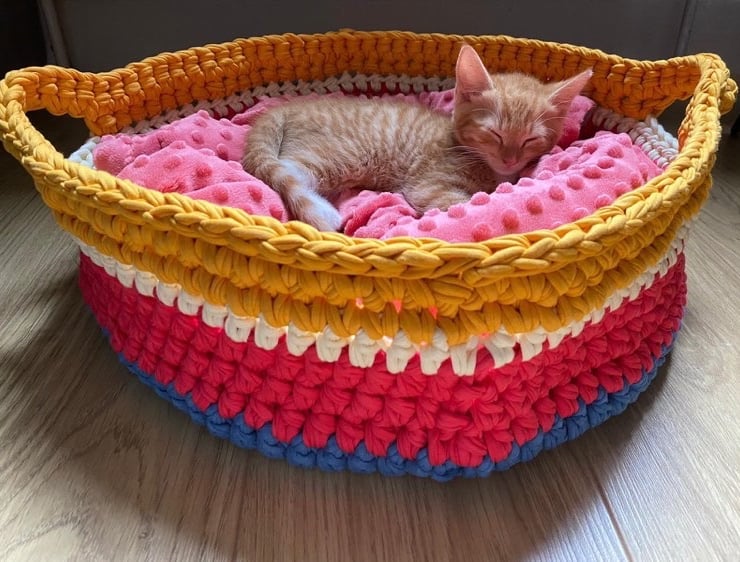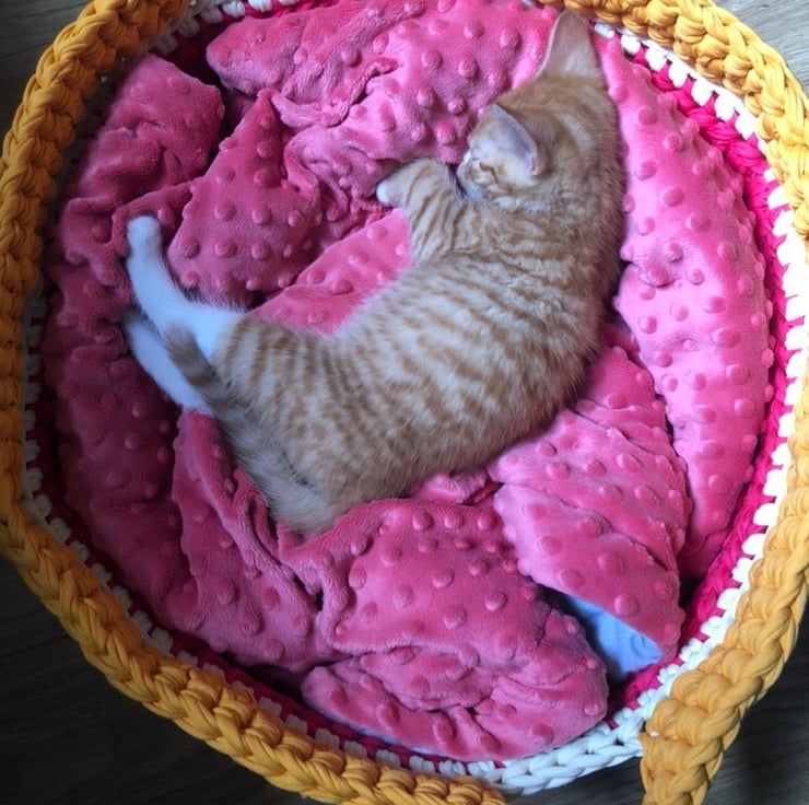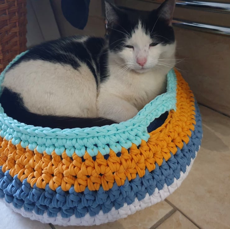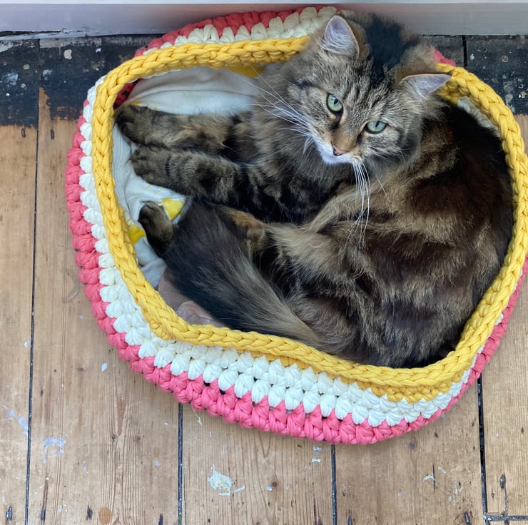 I was forever being asked by customers at craft fairs whether I made pet baskets so it was only a matter of time before I gave in! I've made a few of these now and I love seeing customer photos of their gorgeous cats enjoying their new beds.