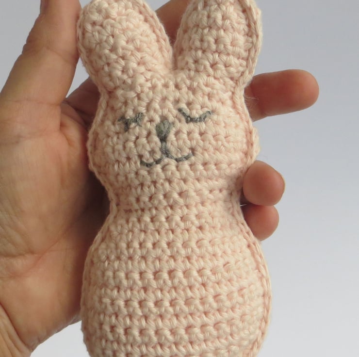 This 'ragdoll' style crochet toy is made in two pieces that are crocheted together, so that there is no chance of her losing her ears. As with all my toys, she has been designed to be safe for babies and young children to play with and meets the requirements of the Toy (Safety) Regulations 2011. She displays the UKCA mark on her label.
