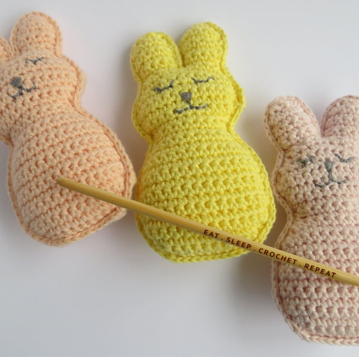 Baby bunnies are currently available in a choice of 3 colours - Pale pink, Peach or Yellow. If you would like one in a different colour, please get in touch. I am always happy to make items to order.