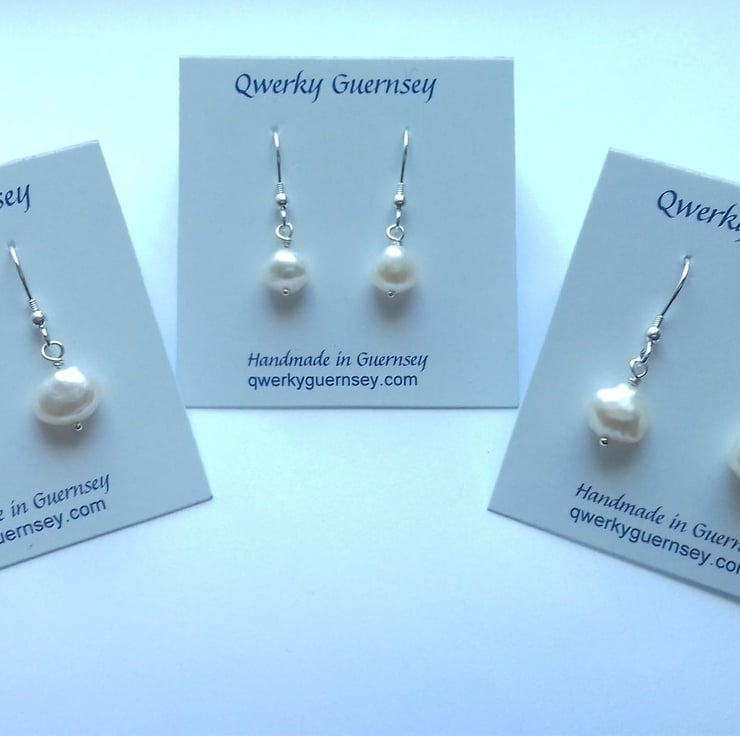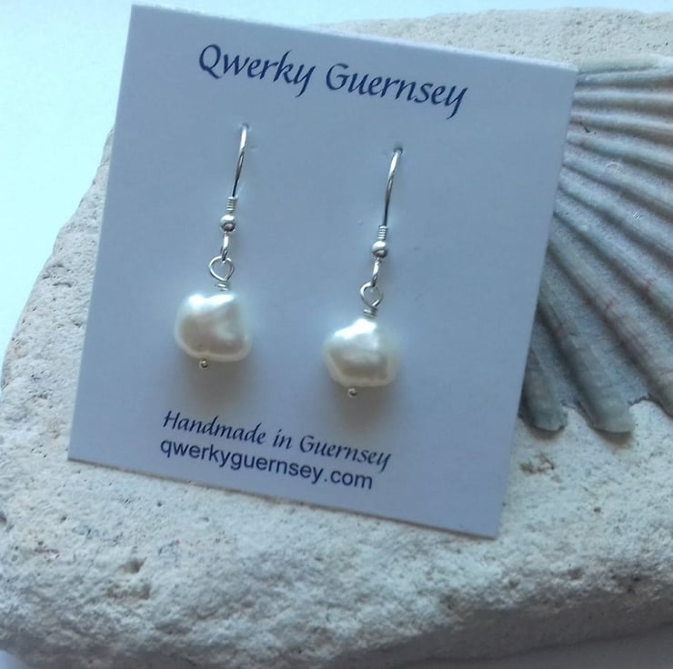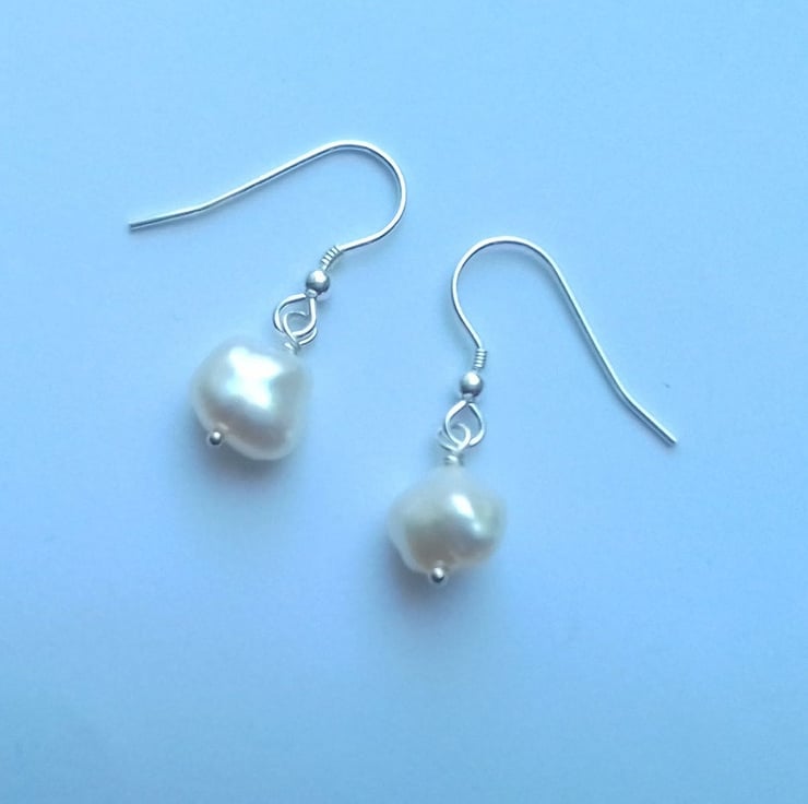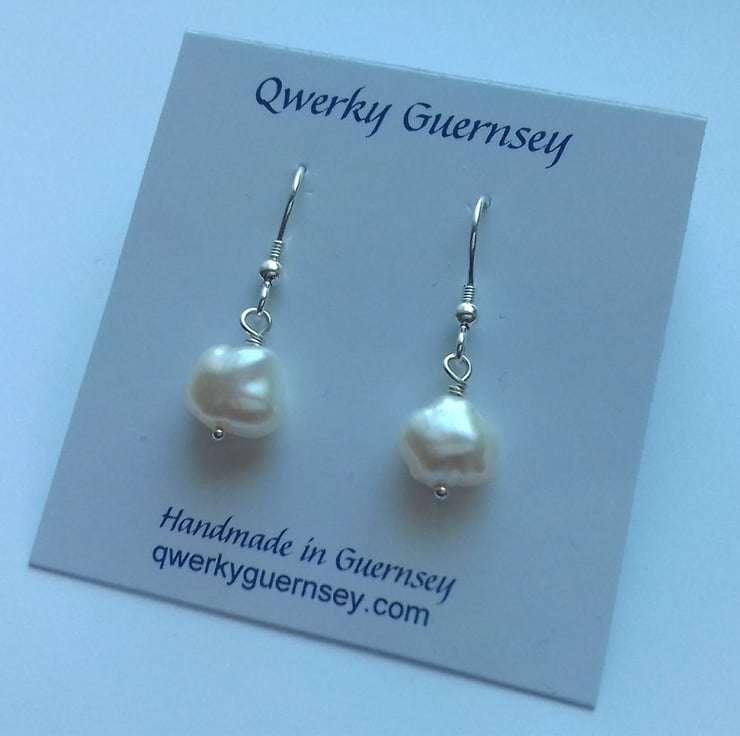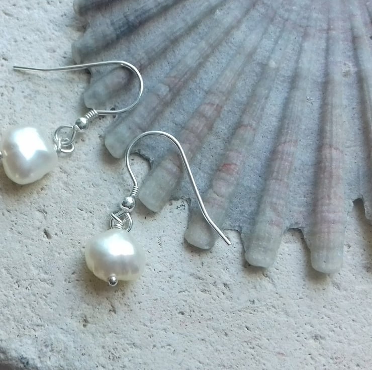 Ivory White freshwater pearl drop earrings with sterling silver ear wires.