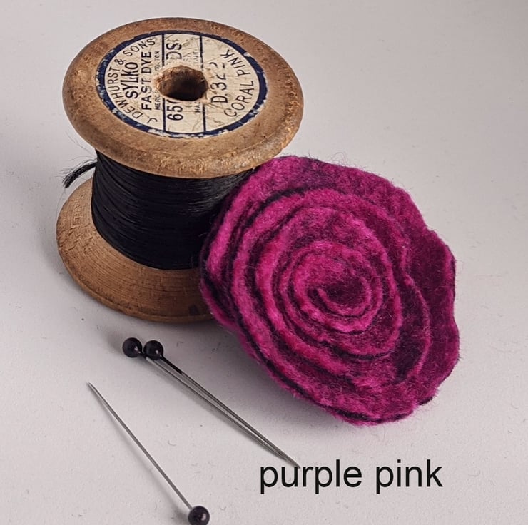 I make this brooch in a large range of colours, so rather than flood Folksy with individual listings for each, I am listing them in batches. The 'Choose options' button leads to a drop down menu listing the colours available in this listing for the purple pink selection.