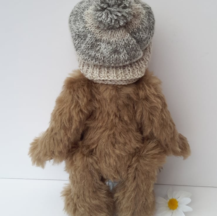 He is just under 12" tall and handmade from luxury mohair, 20mm whirl Helmbold mohair in brown mouse.