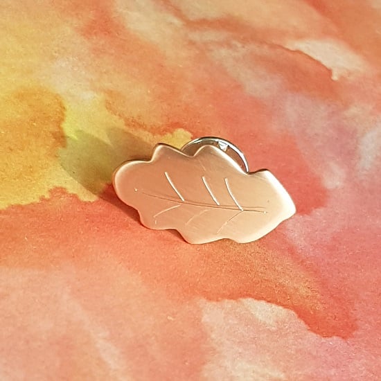 This sweet little oak leaf brooch is hand sawn, hand polished and made from 1.2mm copper and has a sterling silver pin and backing, which clicks into place.