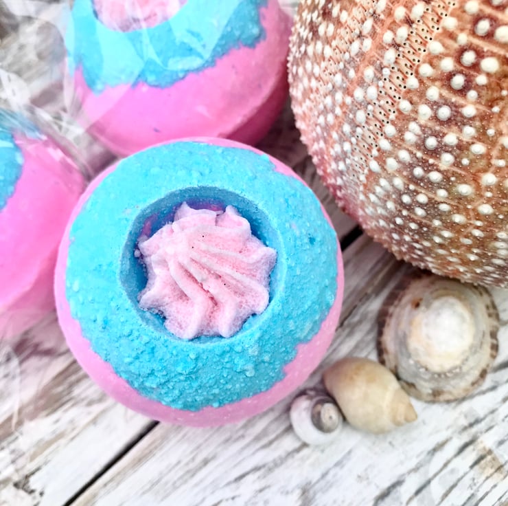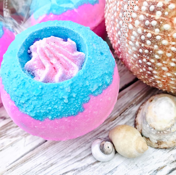 Our Bubblegum Smoothie Bath Bomb is infused with Cocoa and Shea Butter and is bursting with a sweet bubblegum aroma.