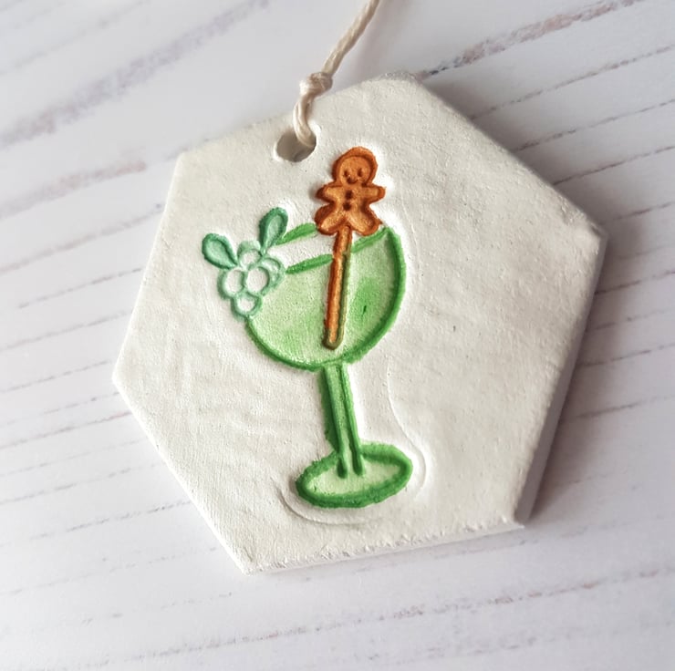 This listing is for one "Christmas cocktail" decoration, with the unusual hexagonal shape!