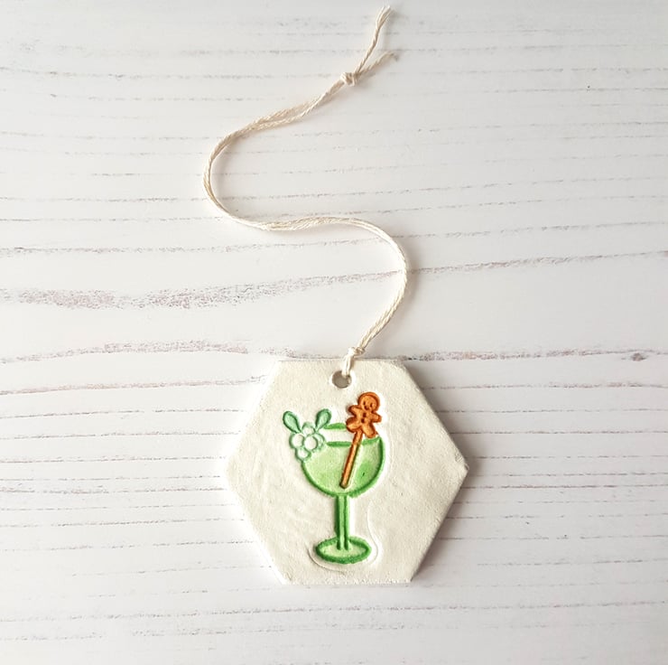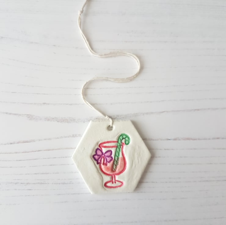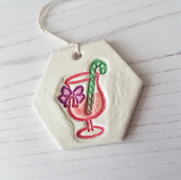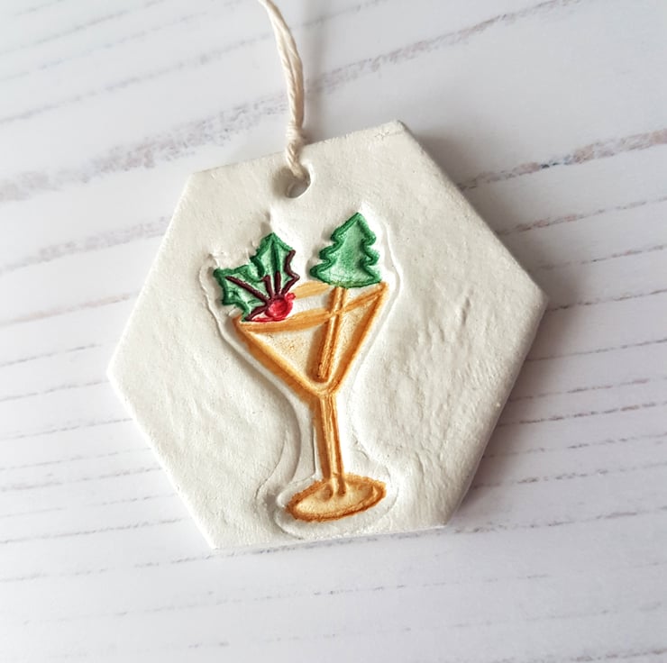 This listing is for one "Christmas cocktail" decoration, with the unusual hexagonal shape!