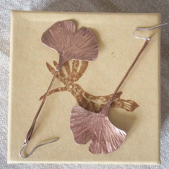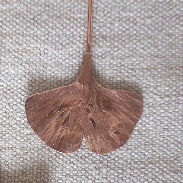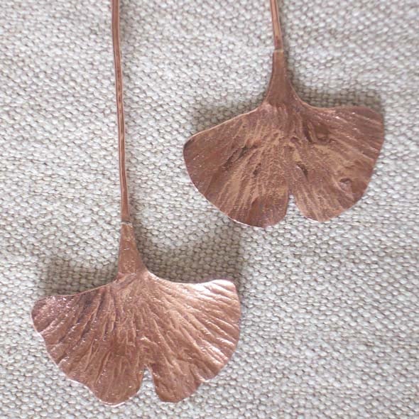 As soon as I saw these amazing leaves I knew I wanted to do them in metal. Then I found out that the Gingko tree goes back millions of years with fossil records. Wonderful! I also love the colour of copper and its malleability.