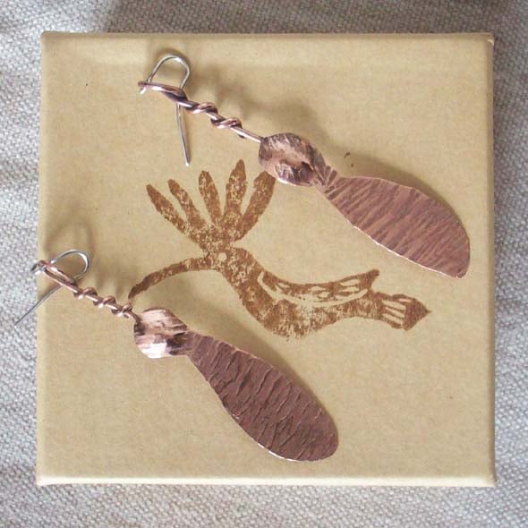 A wing-like form from Nature. Every season has its own beauty but perhaps the fulfillment of Autumn is quite magical with the variety of seed pods. Handmade and shaped using traditional techniques. The earwires are silver. Comes to you in a gift box. Please contact me for multiple postage or outside UK as prices vary. There is also a necklace of sycamore, have a look. Thanks for looking and for supporting hand-made!