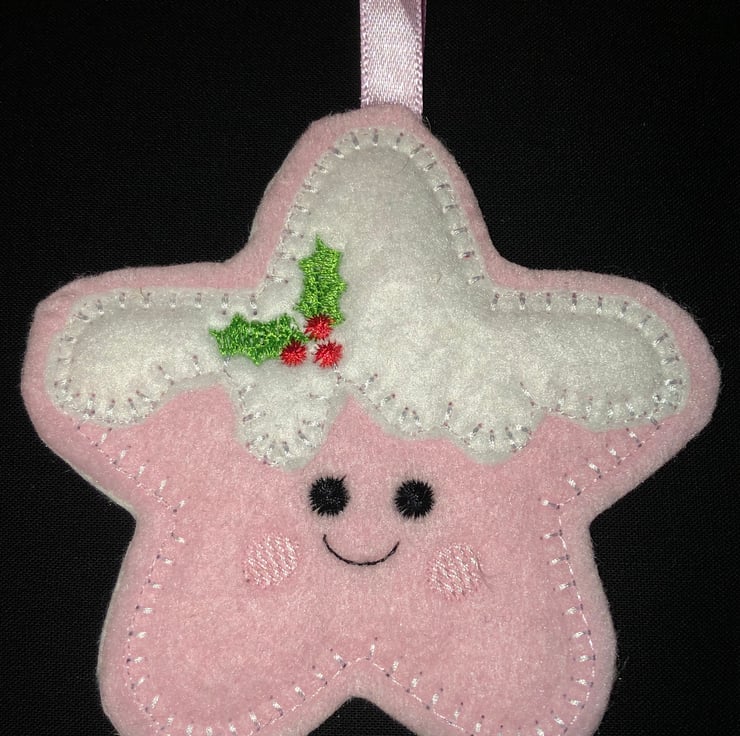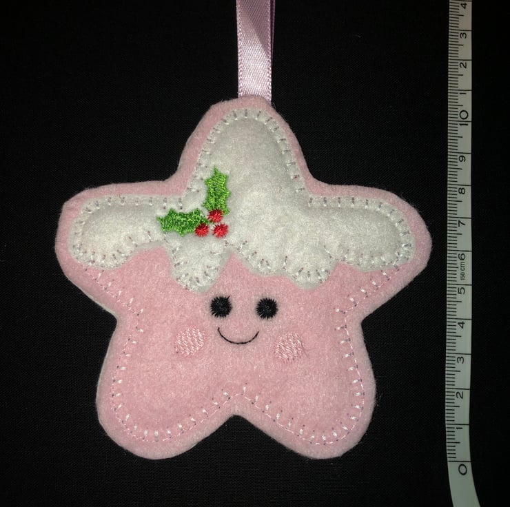 This listing is for one Star Christmas Decoration made from felt with a ribbon hanger.