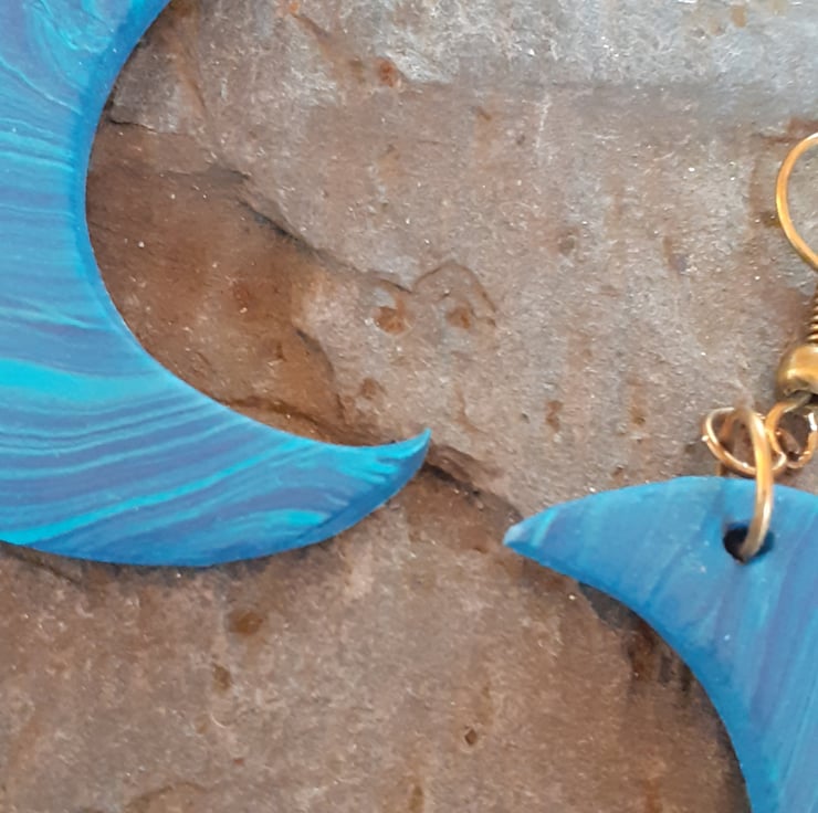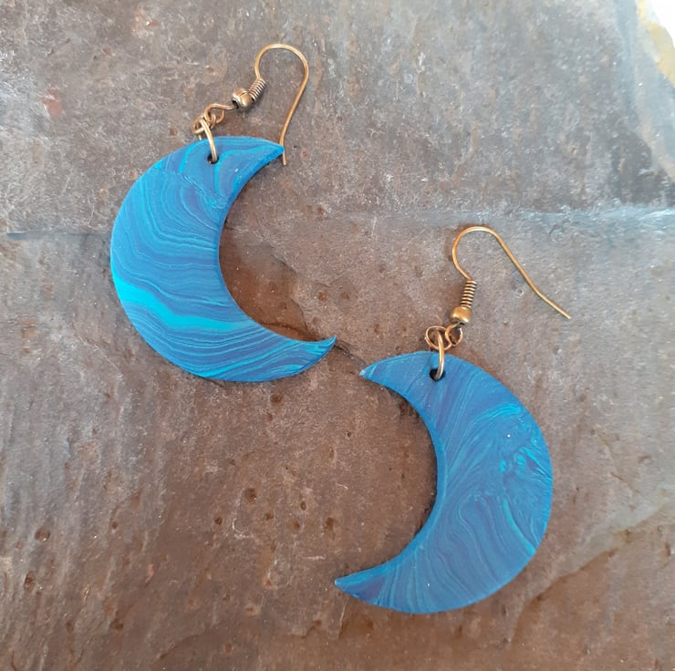 Cosmic swirly mix of different blue clay made into medium sized earrings. 35mm long, 45mm including the nickel free findings.