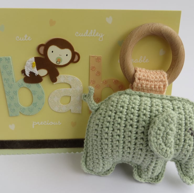 This little elephant teether would make a delightful baby shower or new baby gift.