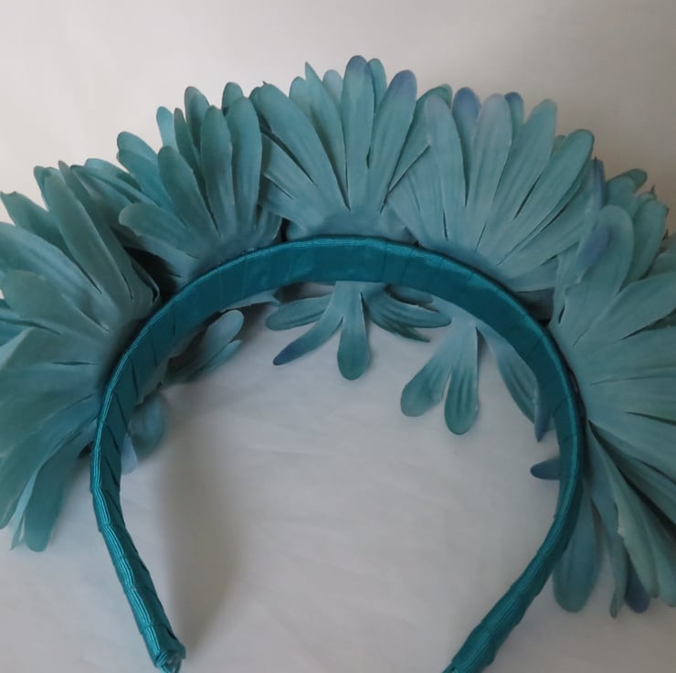 This is a simple and fabulous eye catching large artificial flower crown in light teal.