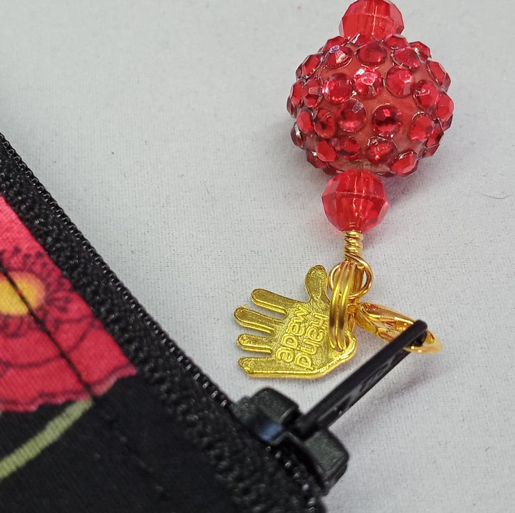 The red beaded zip pull can be detached and clipped onto something else, while the bag can be washed at 30 degrees