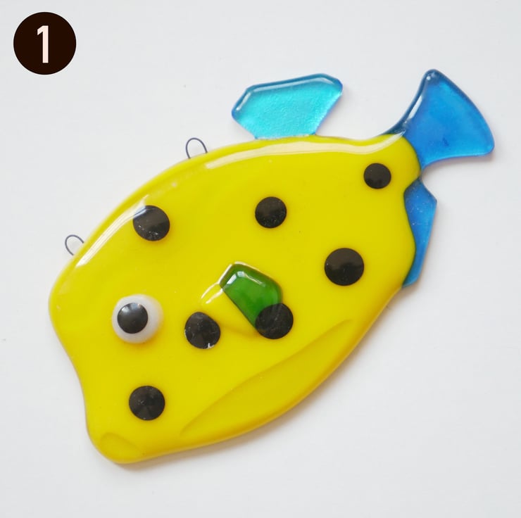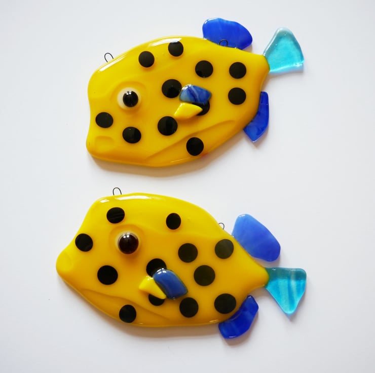 These colourful little fused glass boxfish are designed to bring a splash of friendly fish character to your home or garden.