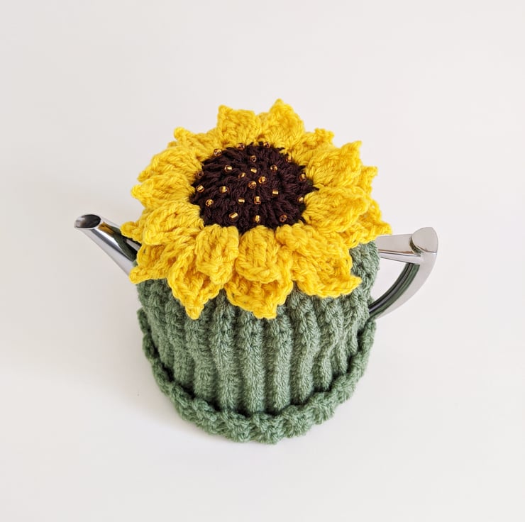 What could be better than a well-brewed cup of tea served from a teapot with this bright and beautiful handmade sunflower tea cosy keeping it warm.