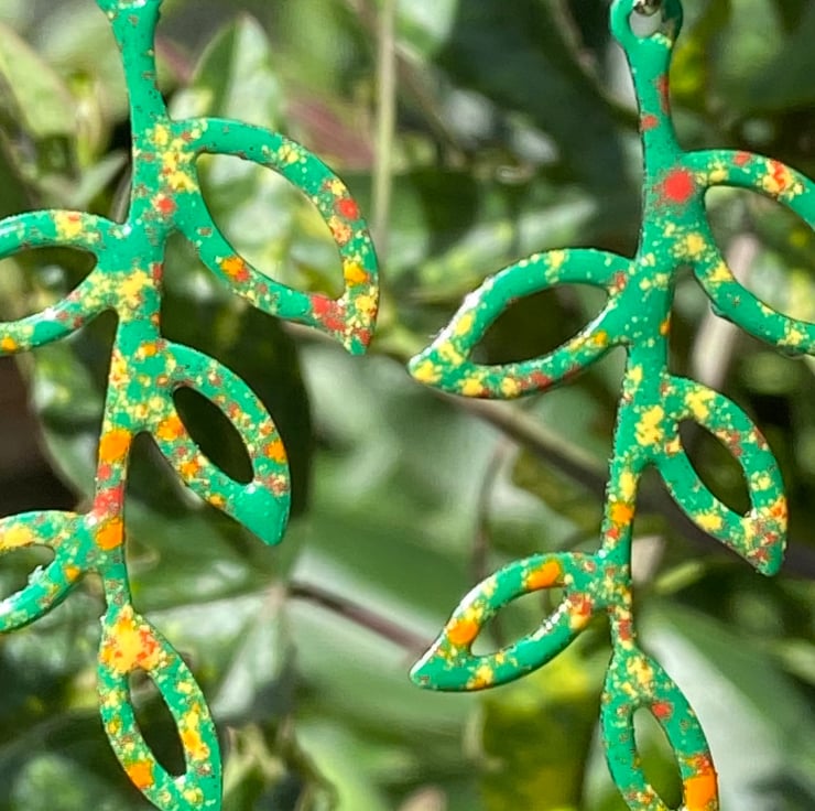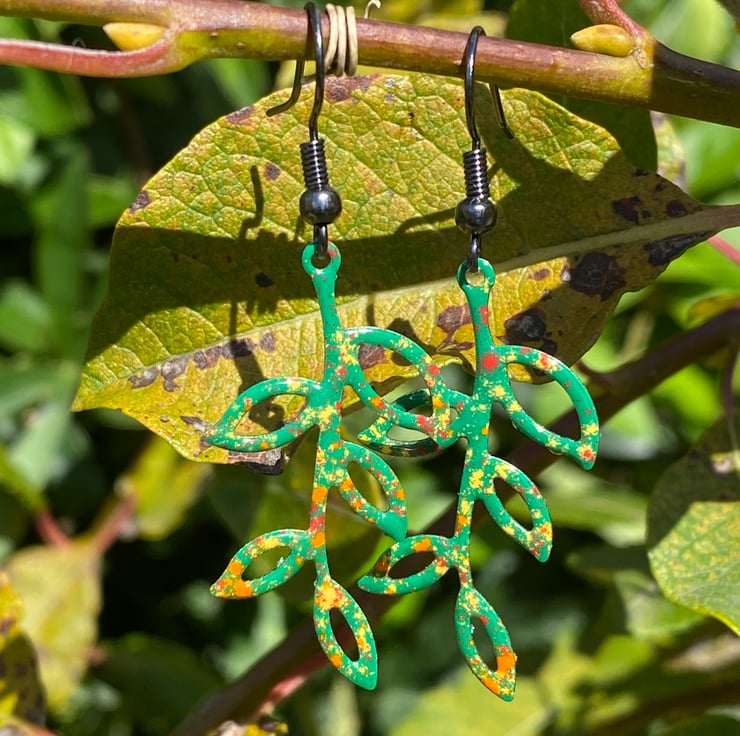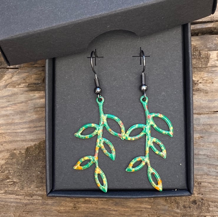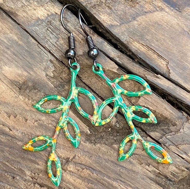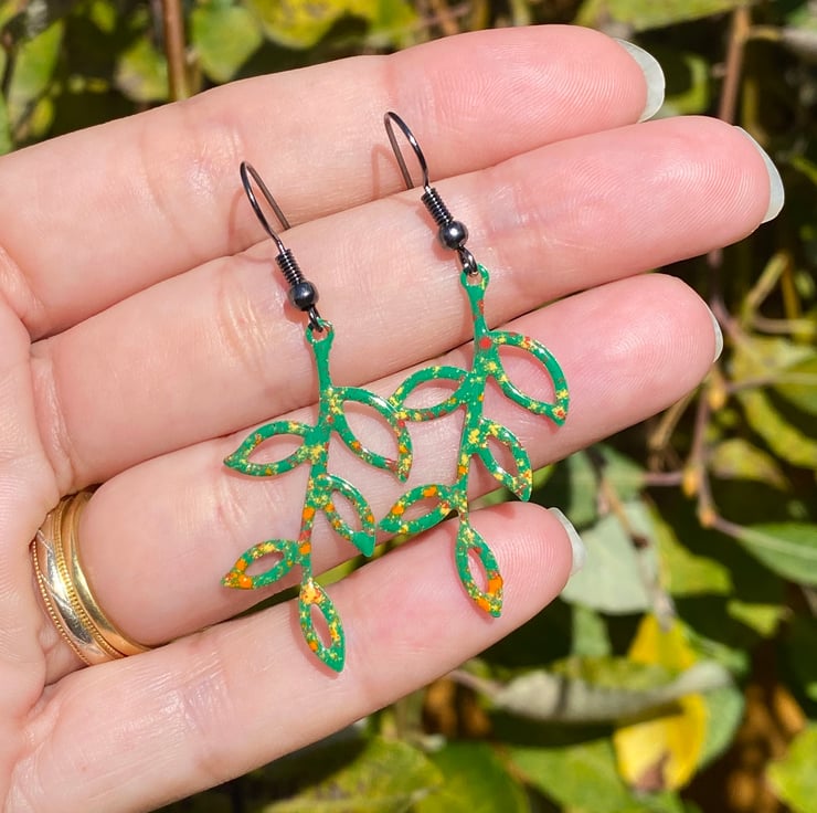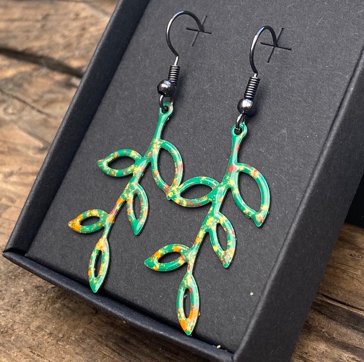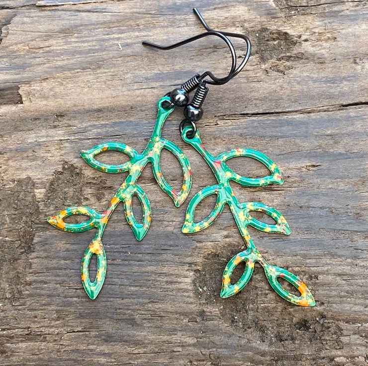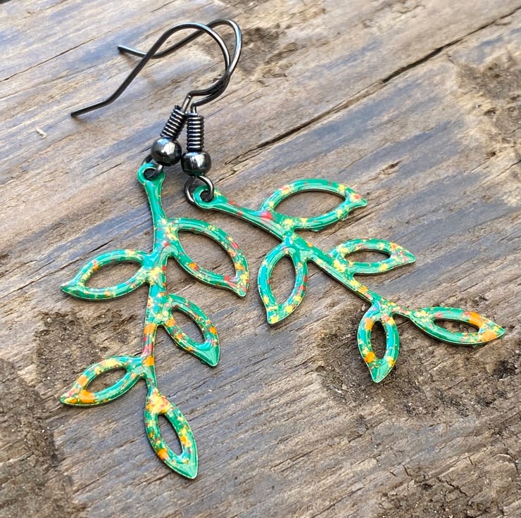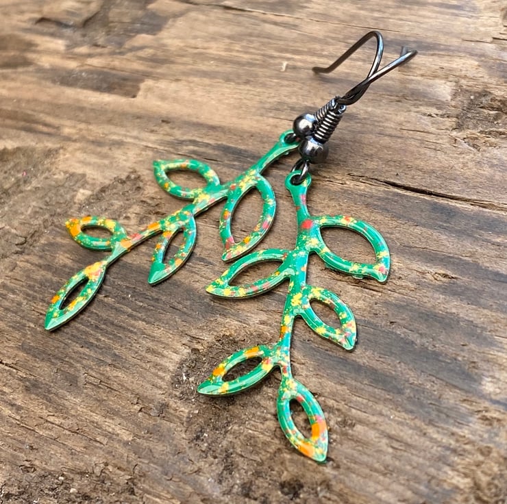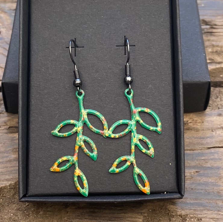 Be unique with a pair of hand enamelled leaf branch earrings in autumnal colours.