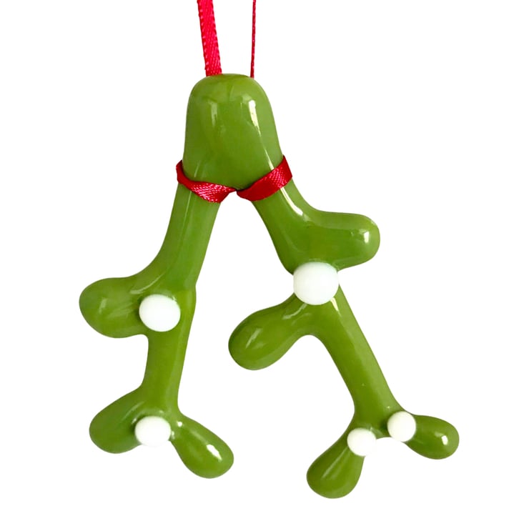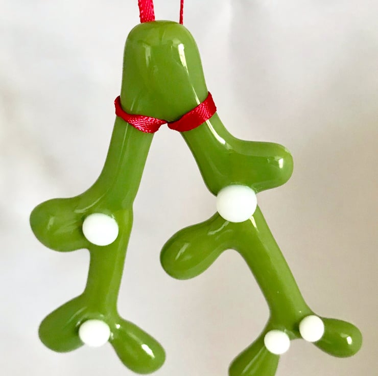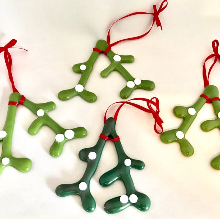 This glass decoration has been made with handcut Bullseye glass and fused at 800 degrees Celsius before cooling and fired again to 750 degrees Celsius to tac fuse the berries.