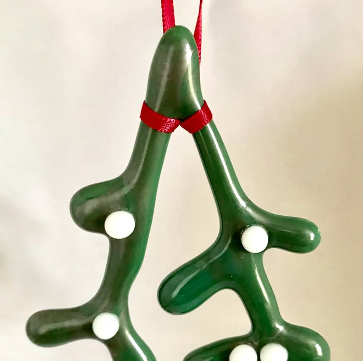 It measures approximately 9 cm long and 8cm wide. It is hung on festive red ribbon ready for you to hang in your home to collect your kisses underneath!