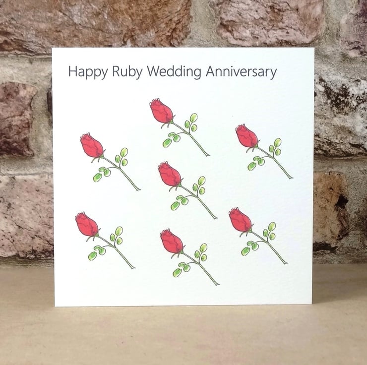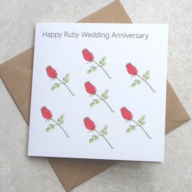 Ruby Wedding Anniversary Rosebuds Card