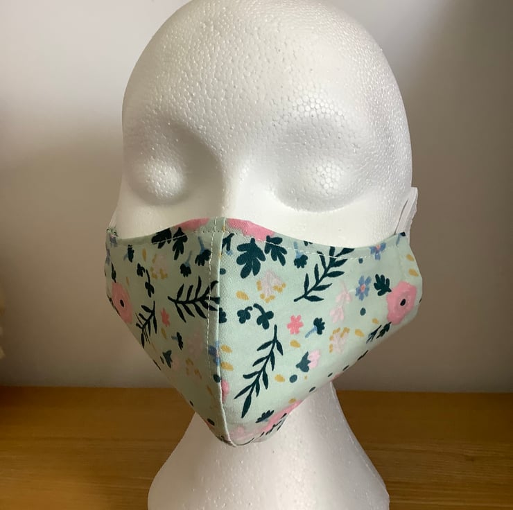Lovely Green Floral cotton Face Mask that is reusable and washable.