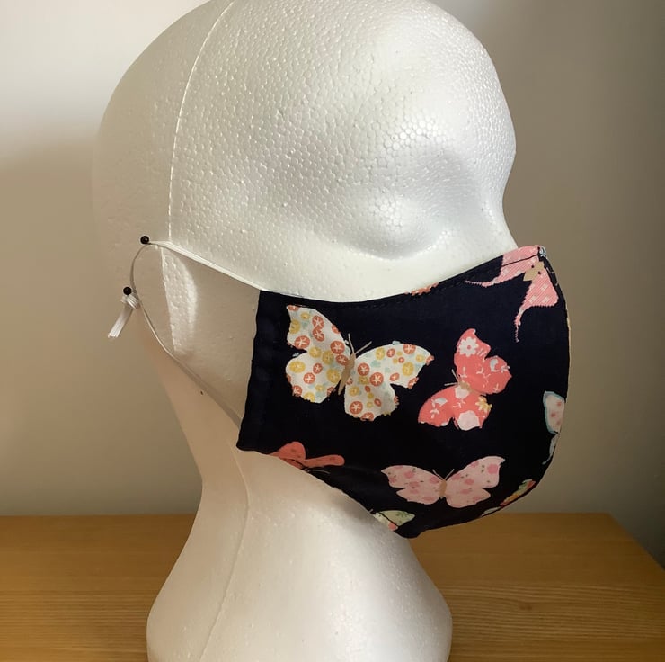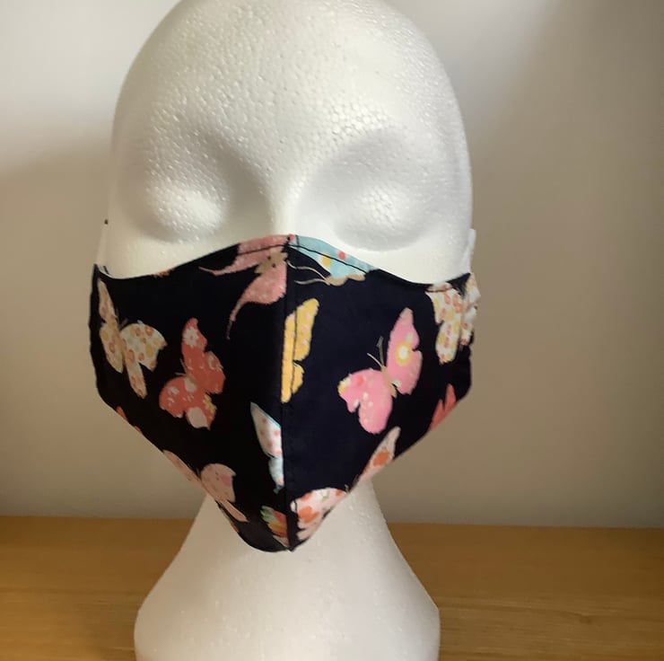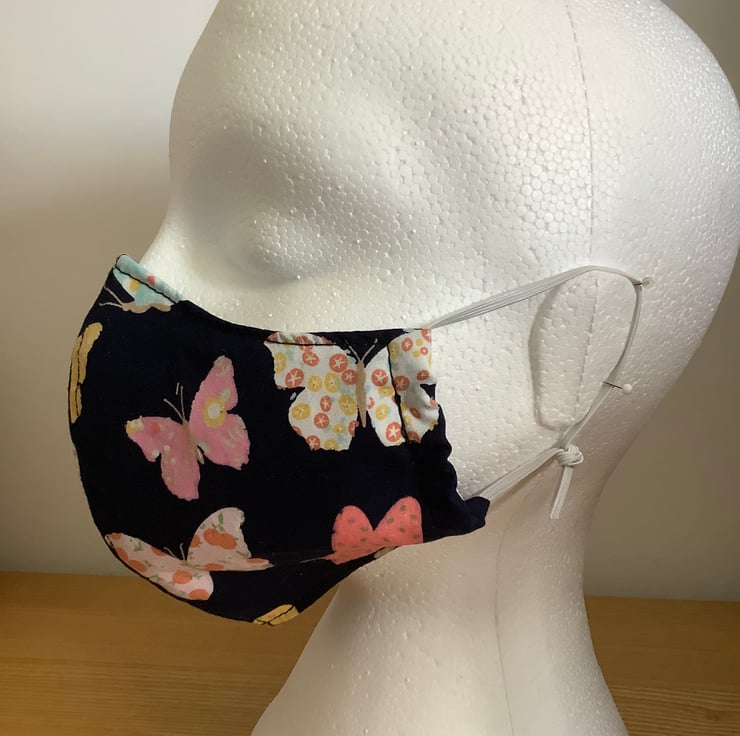 Lovely Navy with Butterflies cotton Face Mask that is reusable and washable.