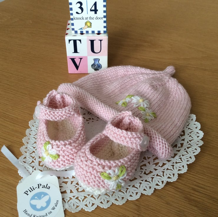 These soft little shoes were hand knitted by me. They are knitted in a cashmere blend wool that is soft for babies feet but can also be machine washed at 30 degrees.