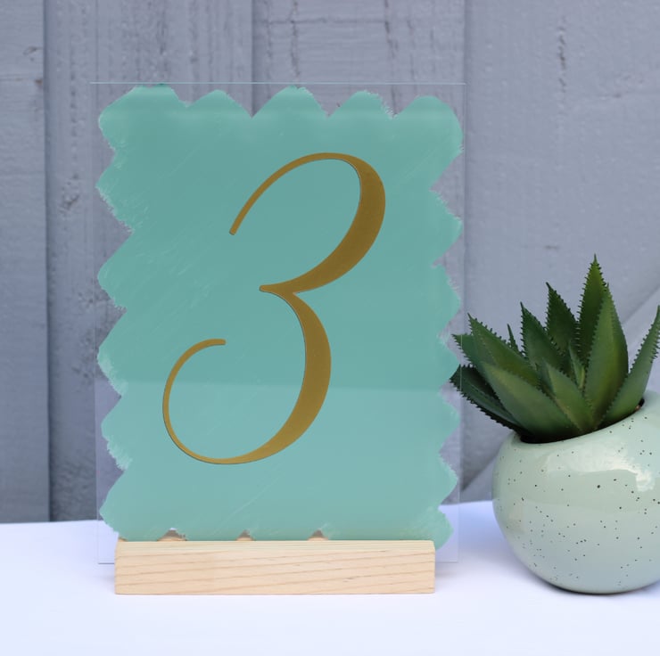 Acrylic sign - wedding TABLE NUMBERS 10x15cm (4 x 6 inches) A6 with handpainted background for wedding table decor. The numbers are cut out of vinyl in swirls font.