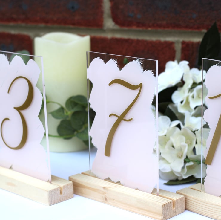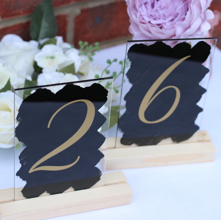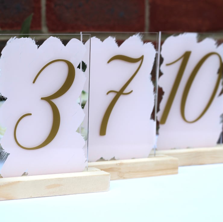Handpainted Acrylic A6 sign wedding TABLE NUMBERS swirls font restaurant dining