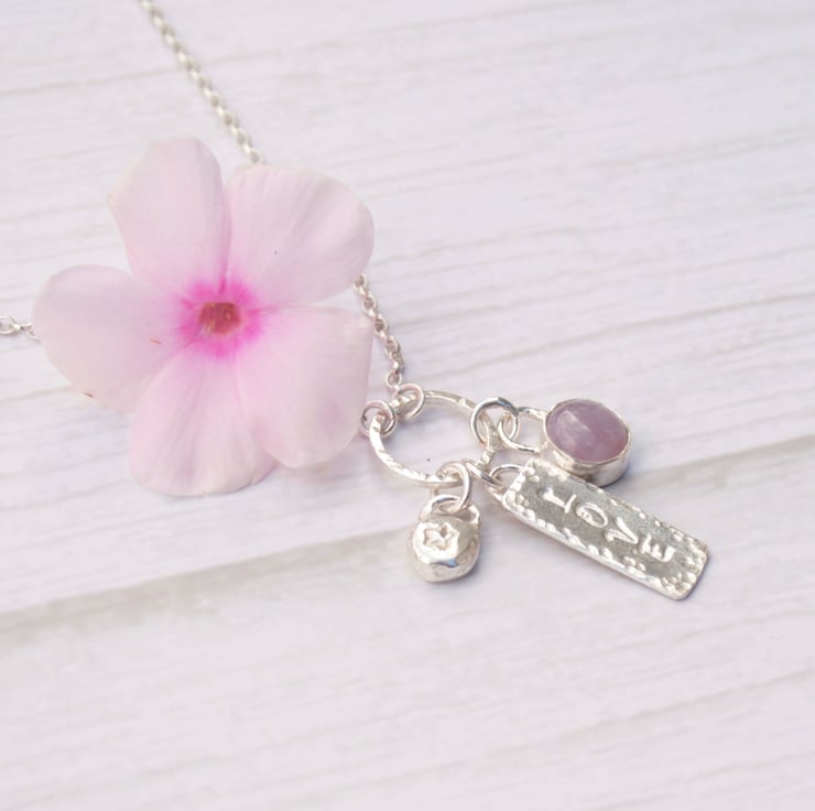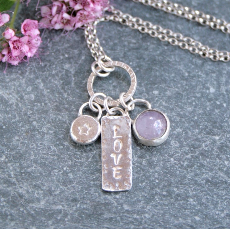 If you would prefer a different word stamped on the rectangle or a different gemstone then please contact me to arrange this.